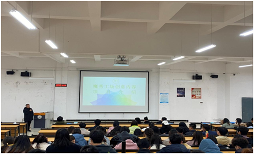 首先,何旭主任谈到,通过校企合作,探索出一条有效缩短教学与社会需求之间距离的教学之路,以切实提高学生的实际工作能力,尽好地适应社会发展对人才的需求,促进大学生顺利就业。所以学校与魔秀科技携手开展了此次校企合作宣讲会。