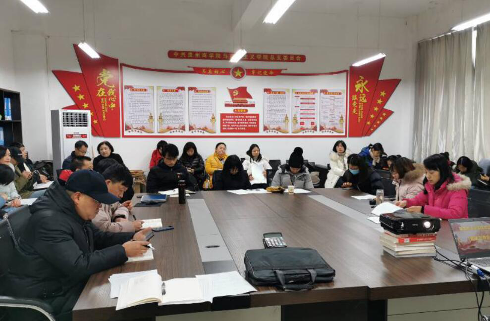 会议学学习传达《贵州商学院贯彻落实关于加强高校党的政治建设的若干措施的实施方案》等有关文件精神。会议要求,全体党员一是要以党的政治建设为统领,着力固根基、强思想、凝人心、促发展。二是要深化思想认识,认真学习习近平新时代中国特色社会主义思想,学习十九届五中全会及省委十二届八次全会精神,进一步树牢“四个意识”,坚定“四个自信”,做到“两个维护”。三是坚持为党育人、为国育才根本使命,聚焦立德树人根本任务,发挥思政理论课主阵地主渠道作用,进一步提高教学质量。四是强化标准化、规范化建设,按照党总支委员会议事规则、党政联席会议议事规则健全科学民主决策机制,按基层组织工作条例和“对标争先”要求规范基层组织建设。五是要加强师德师风建设,坚定理想信念,增强对中国特色社会主义的思想认同、理论认同、情感认同。六是促进科研提升,加强理论研究阐释,着力推出一批有思想含量、有理论分量、优化与质量的研究成果。