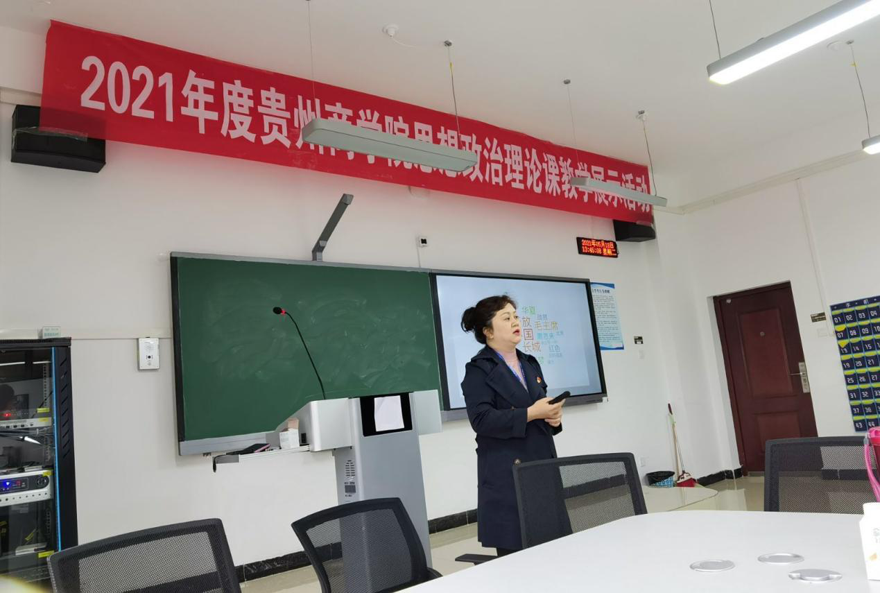 5月19日下午由马克思主义学院承办的2021年度贵州商学院思想政治理论课(以下简称思政课)教学展示活动成功开展。本次活动前期在马克思主义学院各教研室广泛开展,思政课教师全员参与,共推选了五位教师进入全院展示评比。老师们在活动中认真备课,积极研讨,创先争优,在全院展示环节进行了精彩的呈现。马克思主义学院院长白明政点评并总结了本次活动,他认为学院高度重视,精心组织,通过本次展示、交流、学习,切实提高了思政课教师的政治素质、业务能力和育人水平。
