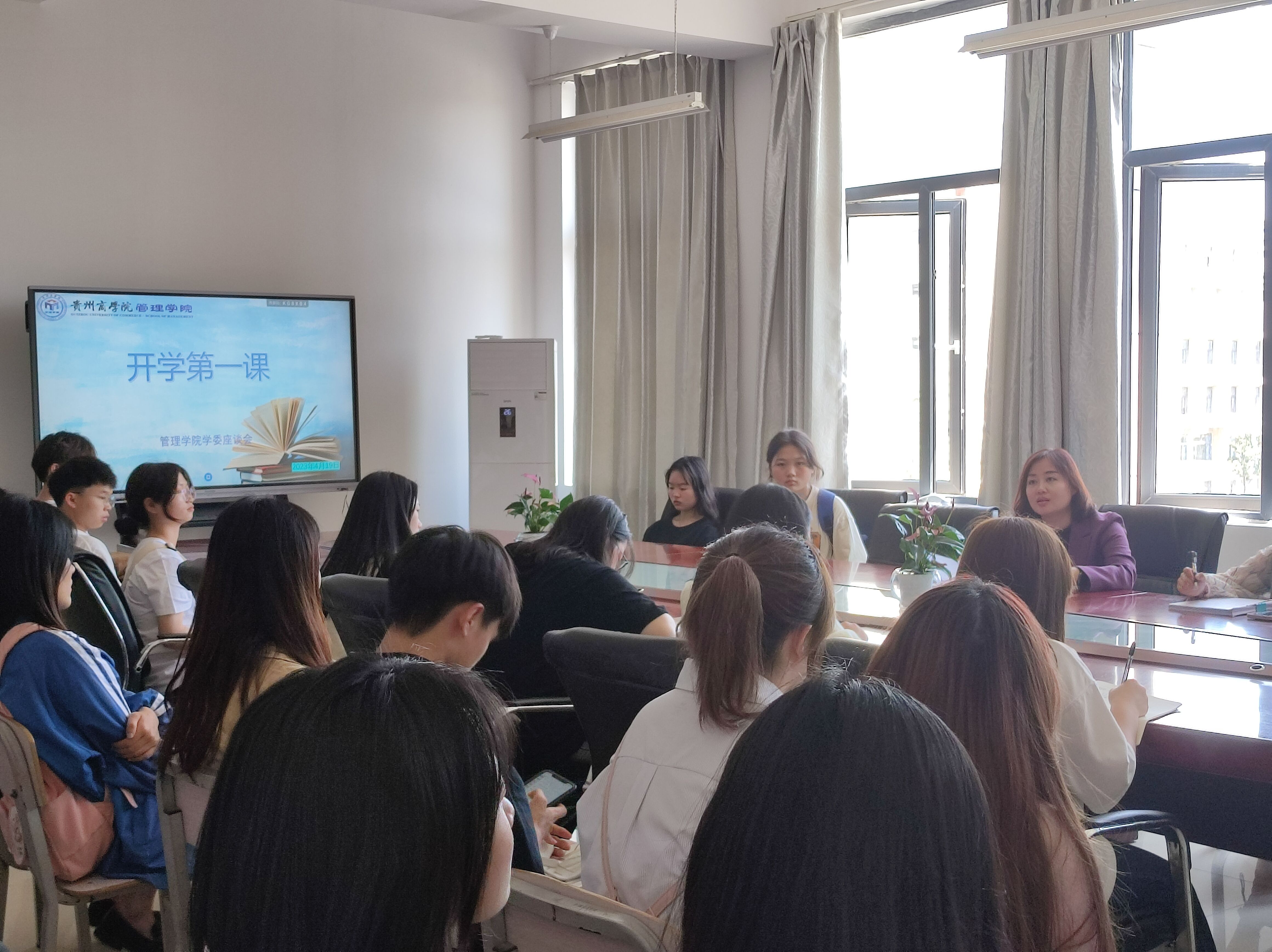 2023年4月19日,管理学院副院长李莉在412会议室为全院各班级学习委员上了“开学第一课”。课上,李莉副院长与学委们进行深入交流,希望学习委员们在新的学期、新的起点,转变工作及学习思路,与其他班干一起辅助辅导员积极为班级营造良好的学习氛围,学会运用国家优秀教学平台,提高自主学习能力。同时希望大家合理规划时间,丰富大学生活,要努力提高自身专业能力和综合素质,要不断培养勇于探索,敢于创新的精神,面向未来,成为国家的有用之才,为贵州地方经济发展献出自己的力量。