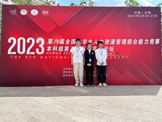 比赛前,学院做了充分准备。人力资源管理教研室积极动员组织人力资源管理专业的同学参加。在竞赛过程中,人力资源管理20-2班宋兴林、龙霞、徐子瀚三位同学在校赛、区域赛中表现优异,从贵州、云南、重庆、四川等来自各高校的团队中脱颖而出,成功进军总决赛。在比赛过程中,他们将专业知识运用于实践,展现了良好的团队合作精神和专业素养,最终取得优异成绩。