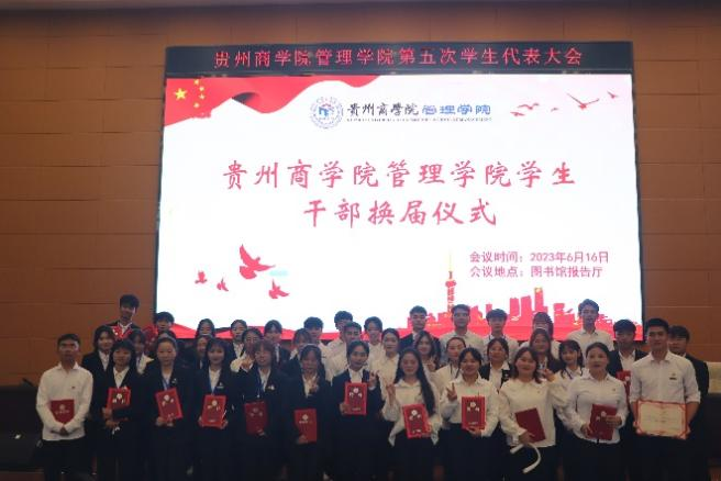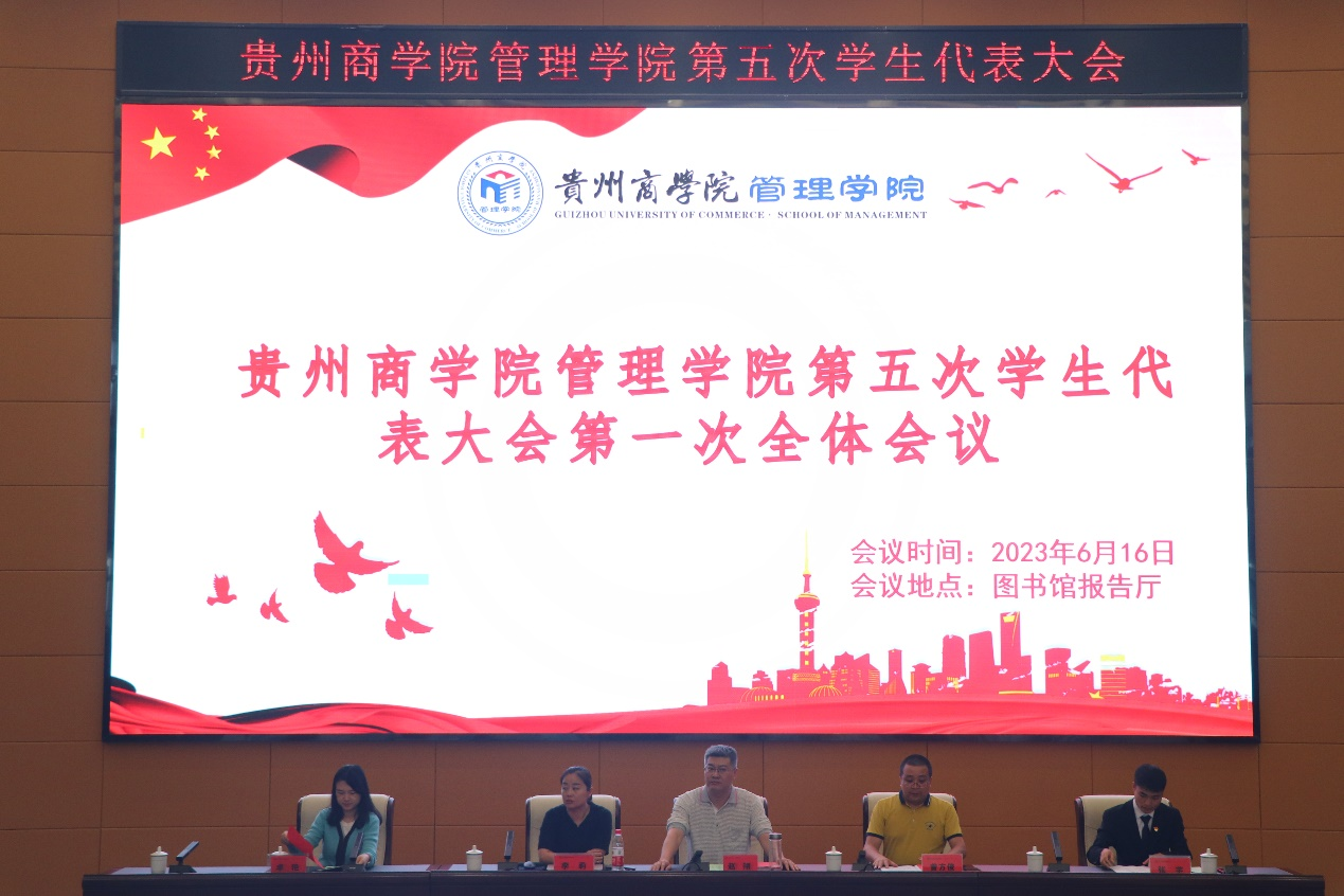 红色六月,青春激扬。贵州商学院管理学院迎来了第五次学生代表大会。本次大会于2023年6月16日15:30在图书馆四楼报告厅召开。管理学院团组织副书记赵翔、副院长曾方俊、副院长李莉、团委组织部副部长卓艳、教科办副主任林洁、校学生会主席团成员张芋以及全体专职辅导员、学生代表共同出席本次大会,会议由管理学院团总支负责人胡萍主持。