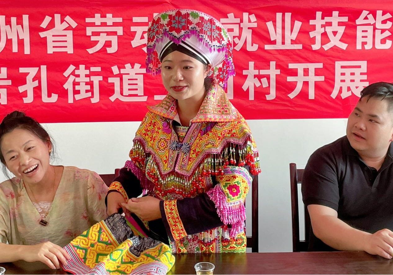 闵远威书记介绍了上山村基本情况,上山村党支书陶阳才做了发言,他首先对学校、各企业代表表示欢迎及感谢,感谢大家百忙之中来到上山村,给予上山村帮助和关心。紧接着,各企业代表上台发言,大家纷纷表示,很感谢管理学院本次活动的开展,作为企业、校友,都有着自己的初心和坚守,大家都想为乡村振兴助力,给村民们做一些力所能及的事情,尽管微不足道,但是他们坚信,一个人的力量是渺小的,但是大家联合起来,助力上山村就会是一件不难的事情。活动进行第三项,由贵凤和张云红总经理一行为村里的经济困难村民代表赠送物资,践行“我为群众办实事”理念,表示将为上山村提供更多的就业岗位和职业技能提升培训,助力上山村发展。活动进行第四项,由严钢酒业·贵人会客厅、贵州省劳动力就业技能职业学校、早晚读书·贵阳絃歌书院为上山村的孩子们赠送书籍以及为大家特制的书包。助力乡村振兴,不仅需要产业振兴,还需要教育振兴,小手拉大手,帮助孩子们扣好人生中的第一颗扣子尤为重要,孩子们收到学习用品以及大家的鼓励,都露出了快乐的笑脸。最后,上山村资深绣娘向大家展示了他们的特色苗绣产品,工艺极其复杂又及其有意义,希望企业、校友能帮助提供苗绣走出大山的智力和资源支持。