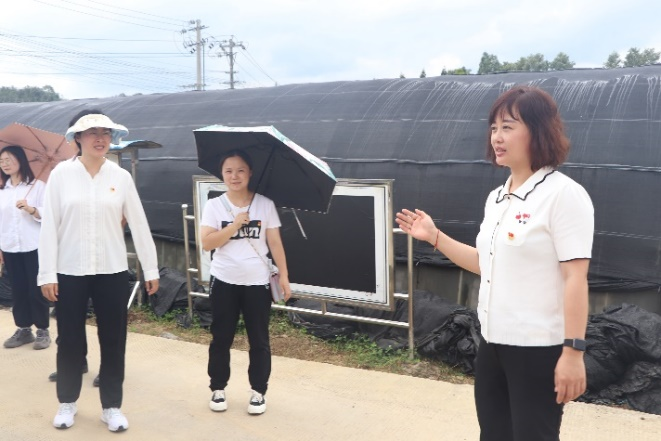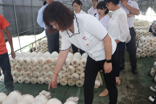 离开永丰村,全院教师党员一行来到了新场镇王坝村。在村委会门前,种植平菇的大棚整齐排列。基地负责人为大家简要介绍了平菇种植基地的基本情况、销售模式等。在棚内,一排排菌棒整齐排放,一朵朵新鲜的平菇长势喜人。李莉通过现场教学的方式在此为大家讲了一场题为《以问题为导向,服务乡村振兴,推动管理学院教学工作高质量发展》沉浸式情景党课,营造出了“处处是课堂”的浓厚氛围,通过现场党课展演,教师党员们切身看到了党建引领农业产业发展的生动景象,也引发了大家对于如何以问题为导向,从而服务乡村振兴的新思考。