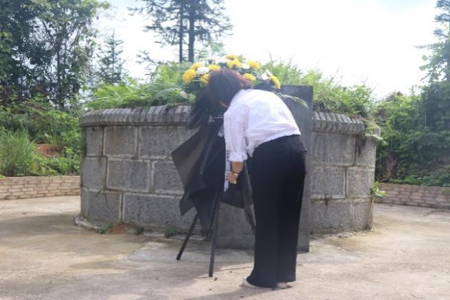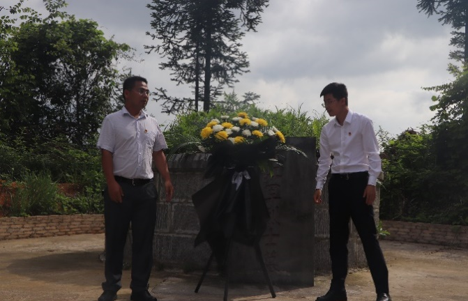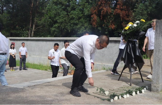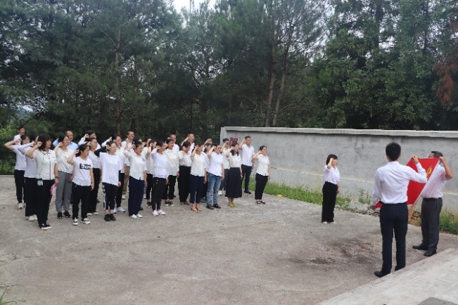 管理学院教师党员一行首先来到新场镇新场村红军山。在现场,管理学院副院长李莉为大家讲述了红军烈士张德龙的故事,并介绍了这座红军山的由来。大家怀着崇敬的心情,肃立在红军烈士墓前,向英烈默哀、鞠躬,表达敬意、寄托哀思。教师一党支部书记杨敏、二党支部书记张幸代表全体教师党员,共同为红军烈士张德龙敬献花篮。管理学院党总支书记田歆缓步上前,仔细整理花篮缎带,表达对红军烈士的崇高敬意。全体教师党员依次走向红军烈士墓,献上手中的鲜花,寄托对红军烈士的深切悼念。敬献花篮仪式结束后,全体教师党员面对党旗,重温入党誓词,在庄严的宣誓中进一步坚定理想信念,树牢初心使命。