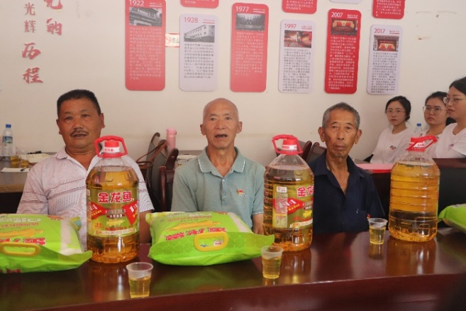 专题党课结束后,管理学院教师第二党支部书记张幸与新场镇党委委员、副镇长,永丰村驻村第一书记黎启瑞代表双方执笔共同签署支部共建协议。双方表示,在共建活动中要进一步强化基层党组织的政治功能和组织功能,全面推进共建双方的工作质量,努力构建“资源共享、优势互补、协同发展”的共建工作新格局,引领共建双方业务工作高质量发展。在现场,三位党支部书记杨敏、张幸、朱荣华代表全体教师党员慰问了永丰村三位党龄50年以上的老党员,为他们送上米、油等物品,向他们致以崇高敬意。