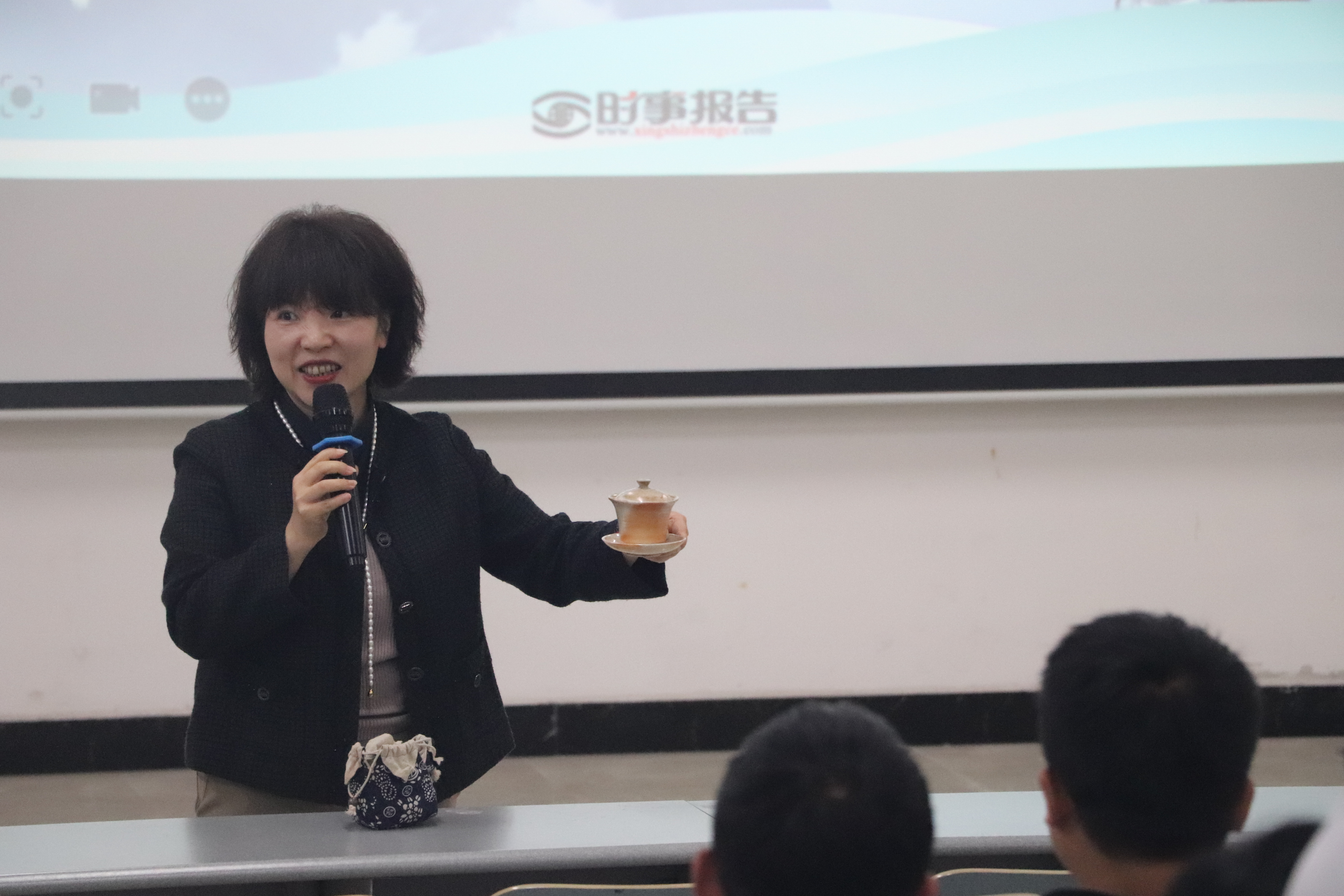 课程伊始,田歆书记由自身经历的小故事引出“赓续历史文脉,谱写当代华章”这一主题,接着与同学们互动,从微观到宏观,以班级文化、地方文化延申至中华文化,强调要深刻把握中华文明的突出特性。讲授过程中,田歆书记说到今天正值重阳节,于是从重阳节谈起,和大家交流了中国二十四节气以及中华茶文化,生动丰富,尽显中华文化的连续性、创新性、统一性、包容性、和平性
