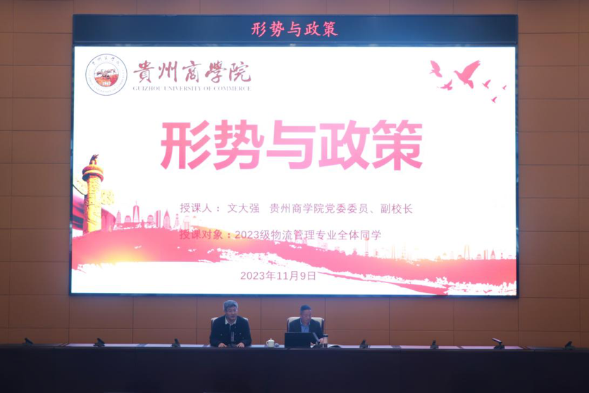 文大强以“加快建设教育强国、科技强国、人才强国”为主题,结合贵州省高等教育高质量发展大会精神和物流管理专业特色,给同学们上了一场内涵丰富、生动精彩的形势政策课。