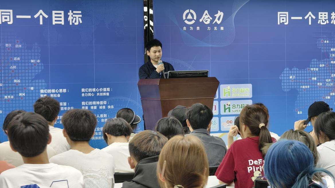 物流总监杨飞虎从“物流供应链模式与物流布局”、“物流仓库规划与设计”、“现场运营及业务流程”、“系统与设备的技术应用”这四个方面简要介绍合力超市的物流运作体系,让同学们对商超物流有了更为清晰的认识。总经办主任吴兵探讨了了“人生的选择”的话题,他指出,人生无时无刻不在做选择,选择没有对错,只有不同的后果和结果。每个人的选择都是基于自己的经验、价值观和目标,不同的选择最终会导致不同的人生道路和命运。吴主任的人生分享更是让同学们领悟到职场生存的智慧。