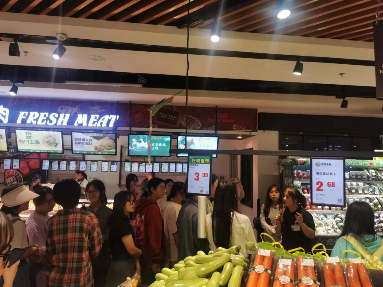随后,三个班的同学分别前往合力超市花果园R区店、美的林城阳关站店、白云店进行实地参观学习。在各个门店运营业务负责人的带领下,同学们深入超市的各个区域,从常规区到酒水区,每一寸土地都充满了商业的智慧。货架的整理、产品的陈列、货物的采购与配送,每一个细节都展现了超市运营的高效与精细。通过这次实地参观,同学们不仅了解了超市的运营管理知识,更深刻体会到了理论知识与实践操作的紧密结合。