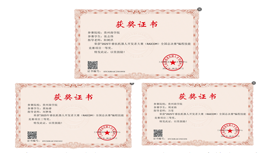 近日,2025年睿抗机器人开发者大赛(RAICOM)CAIP编程技能赛全国总决赛落幕。我院学子表现卓越,经过省级赛、全国赛的选拔,获得了全国一等奖1项、三等奖2项,省级一等奖1项、二等奖2项、三等奖15项,获奖总数和等级均创造了历史新高,展现了扎实的专业素养和创新实践能力。