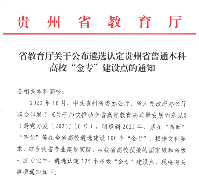 为扎实推进“金专”建设,学院将结合学科专业调整优化实际,严格按照省教育厅要求,重点抓好三方面工作:加强评价监测、推动示范引领、强化服务导向。下一步,学院将以“金专”建设为重要抓手,持续优化专业结构,提升人才培养质量,着力培养更多适应数字经济发展需求的高素质应用型人才,为贵州经济社会高质量发展贡献力量。