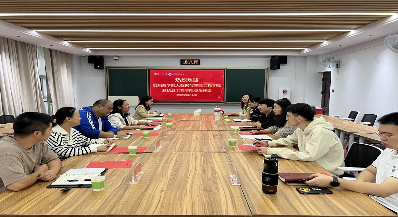 2025年10月14日上午,大数据与智能工程学院(下称数智学院)党委书记唐娅率领学院党政办、学工办、团总支和学生支部负责人一行6人在赴贵州开放大学(贵州职业技术学院)信息工程学院开展交流座谈。