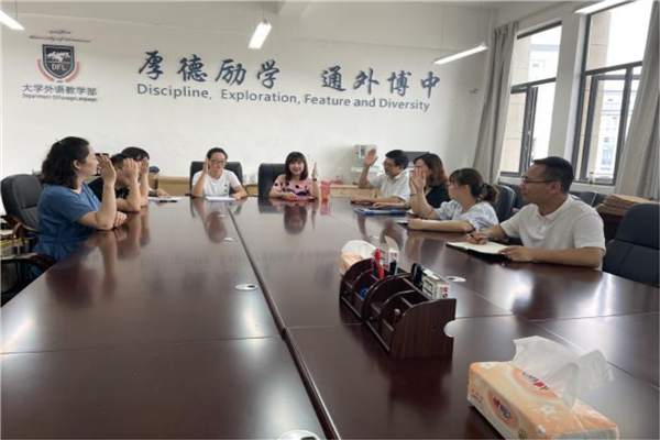 2021年6月18日上午,大学外语教学部(国际教育学院)第二党小组在尚智楼B区414会议室召开党小组会议,讨论预备党员吴贵勇同志转正事宜,会议由党小组长王学芳主持。