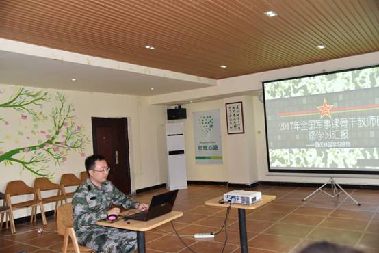 学生处副处长杨通宇在此次主题沙龙中,介绍了他于6月初赴重庆参加2017年全国军事骨干教师研修学习的经历。首先,杨通宇老师介绍了他在重庆林园学习的日常生活。在这次学习中,以一日作息时间、军人的作风要求在本次生活、学习过程中一切按照军事化的严格要求,自己深刻体验了部队的军旅文化。