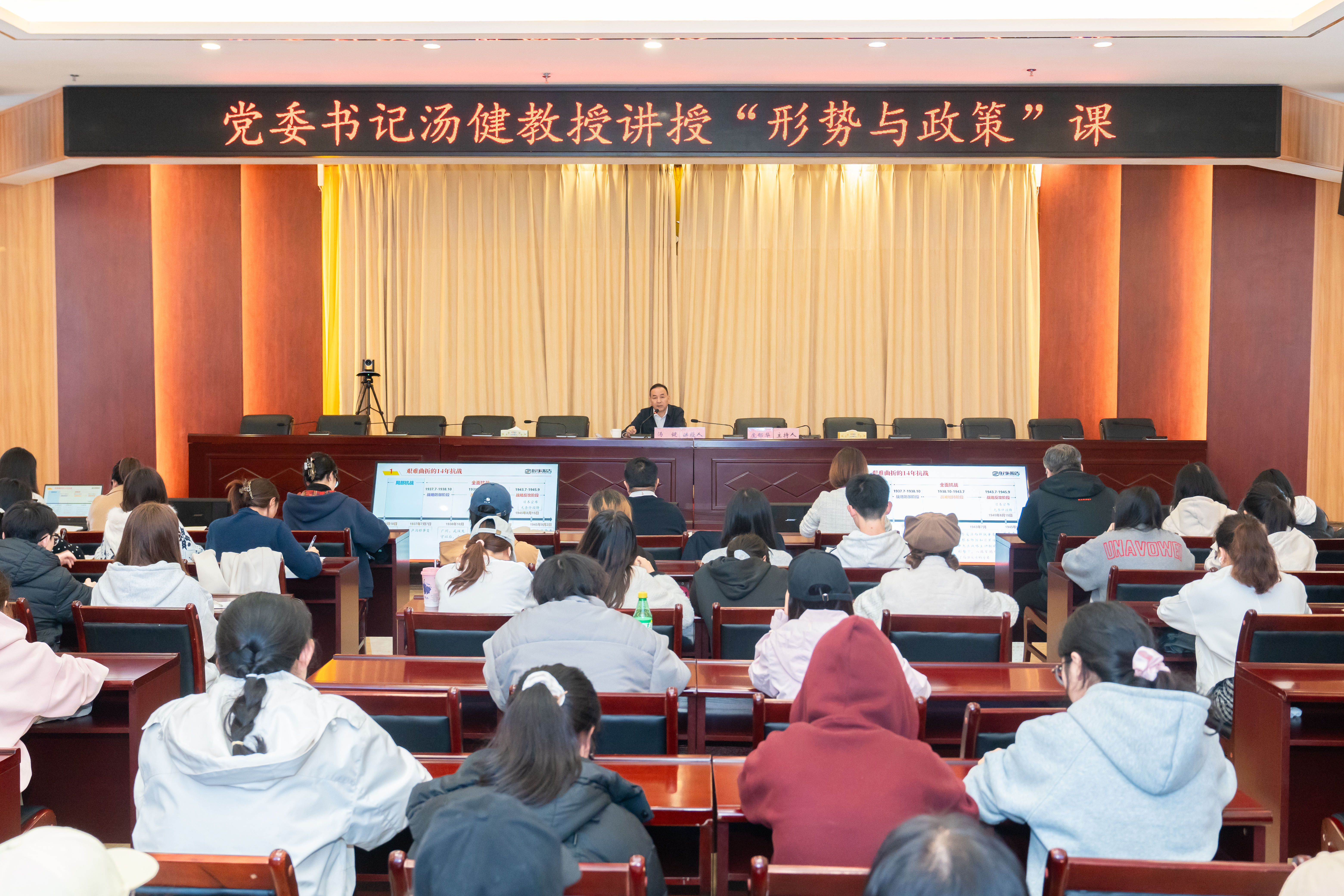 为铭记抗战历史,传承伟大抗战精神,11月7日下午,党委书记汤健教授以《纪念抗战胜利 坚定民族信念》为主题,为师生讲授形势与政策课,带领师生们在历史回望中汲取奋进力量,在精神感悟中强化责任担当。工商管理学院党委书记庞郁华主持。