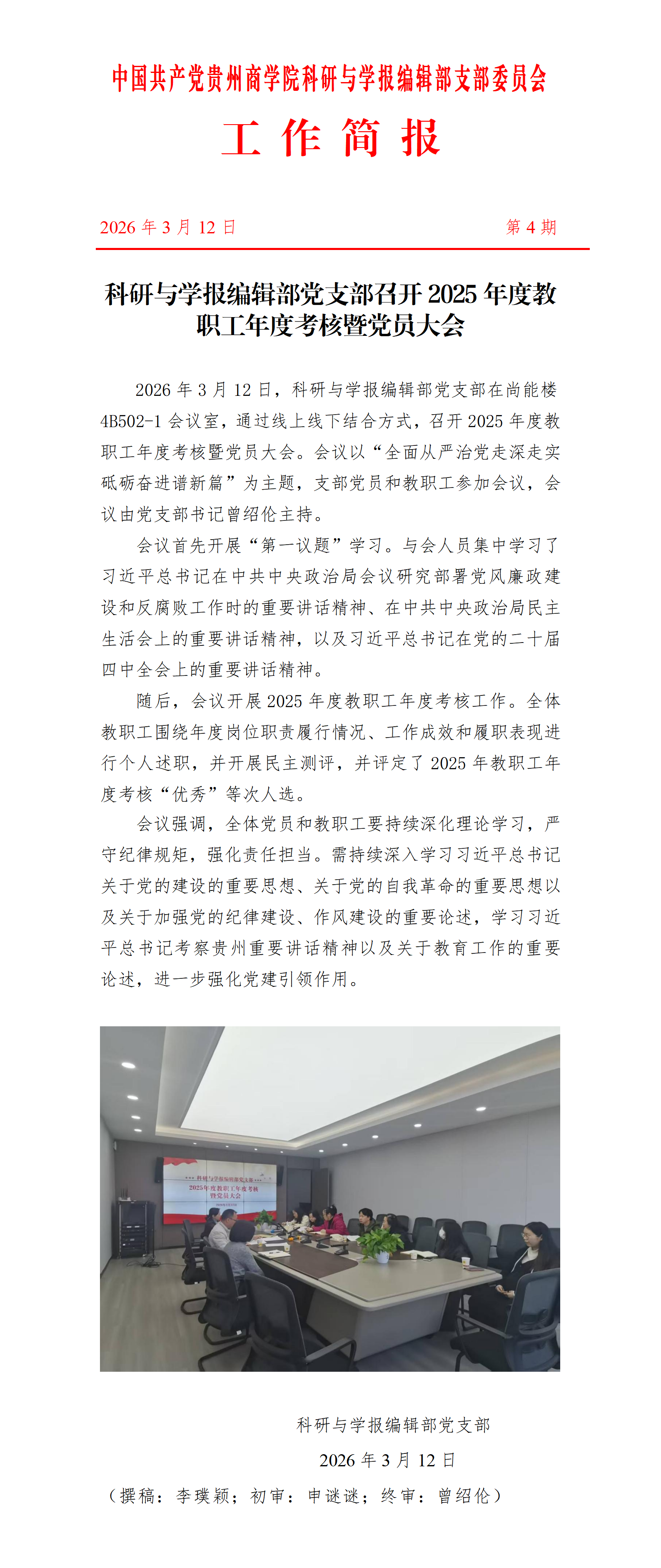 科研与学报编辑部党支部召开2025年度教职工年度考核暨党员大会
