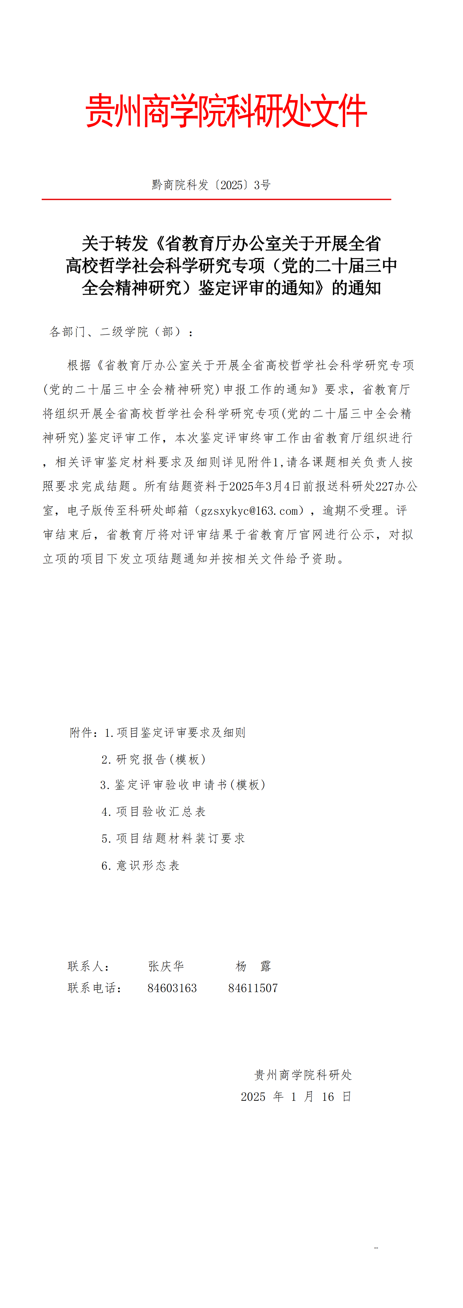 关于转发《省教育厅办公室关于开展全省高校哲学社会科学研究专项(党的二十届三中全会精神研究)鉴定评审的通知》的通知