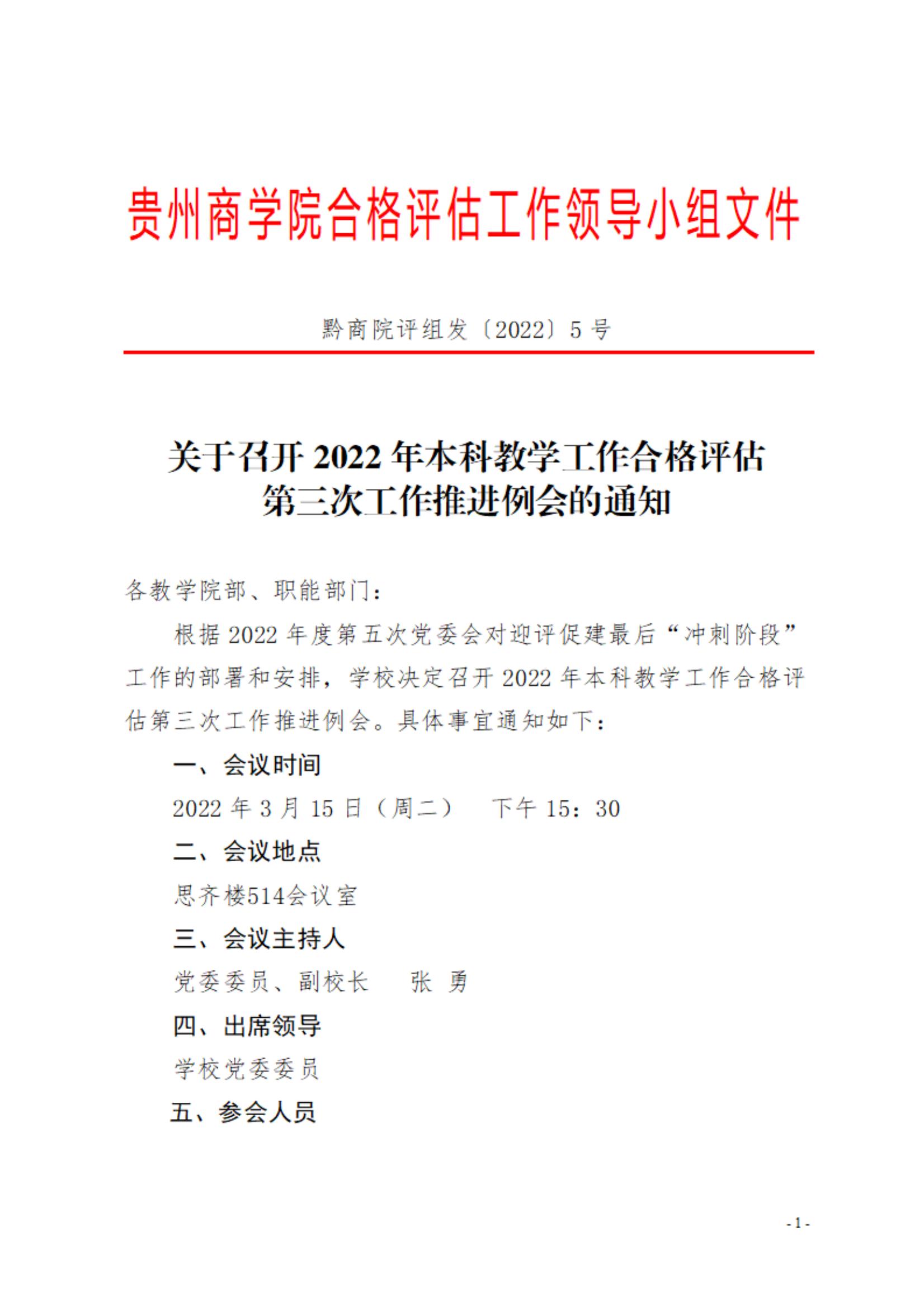 关于召开2022年本科教学工作合格评估第三次工作推进例会的通知