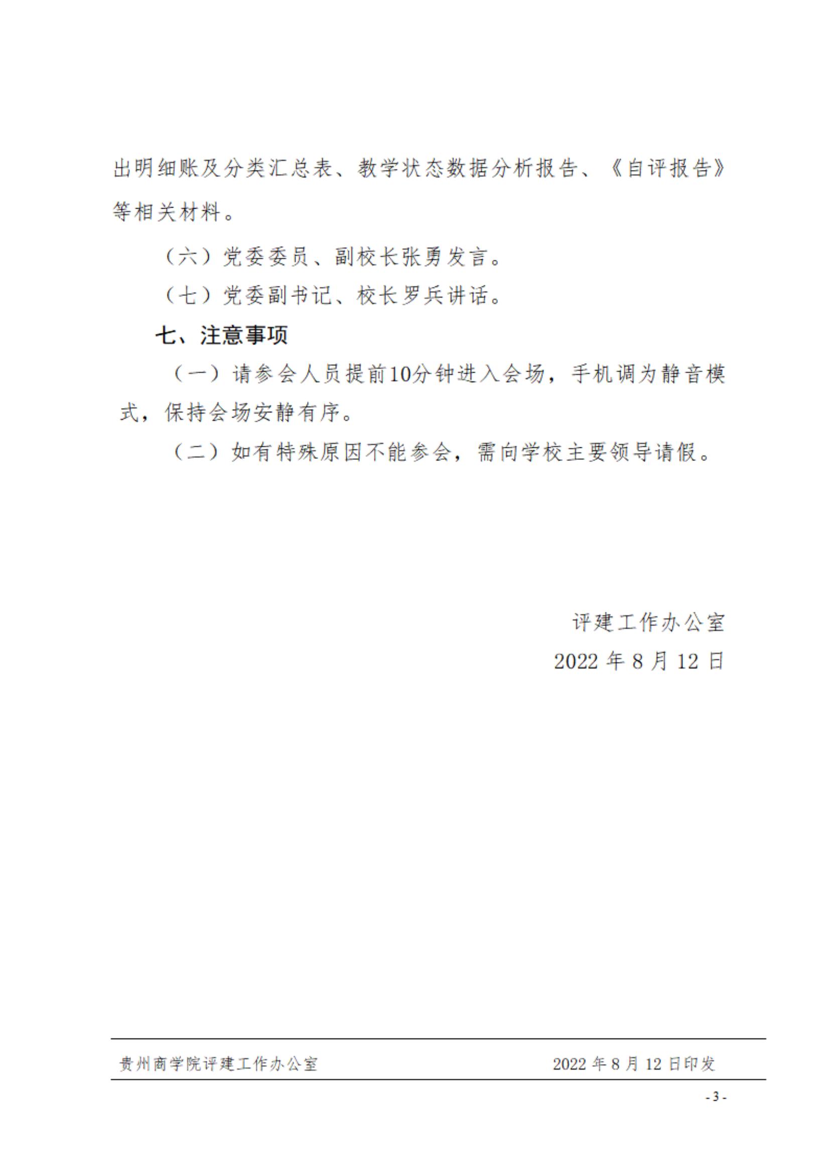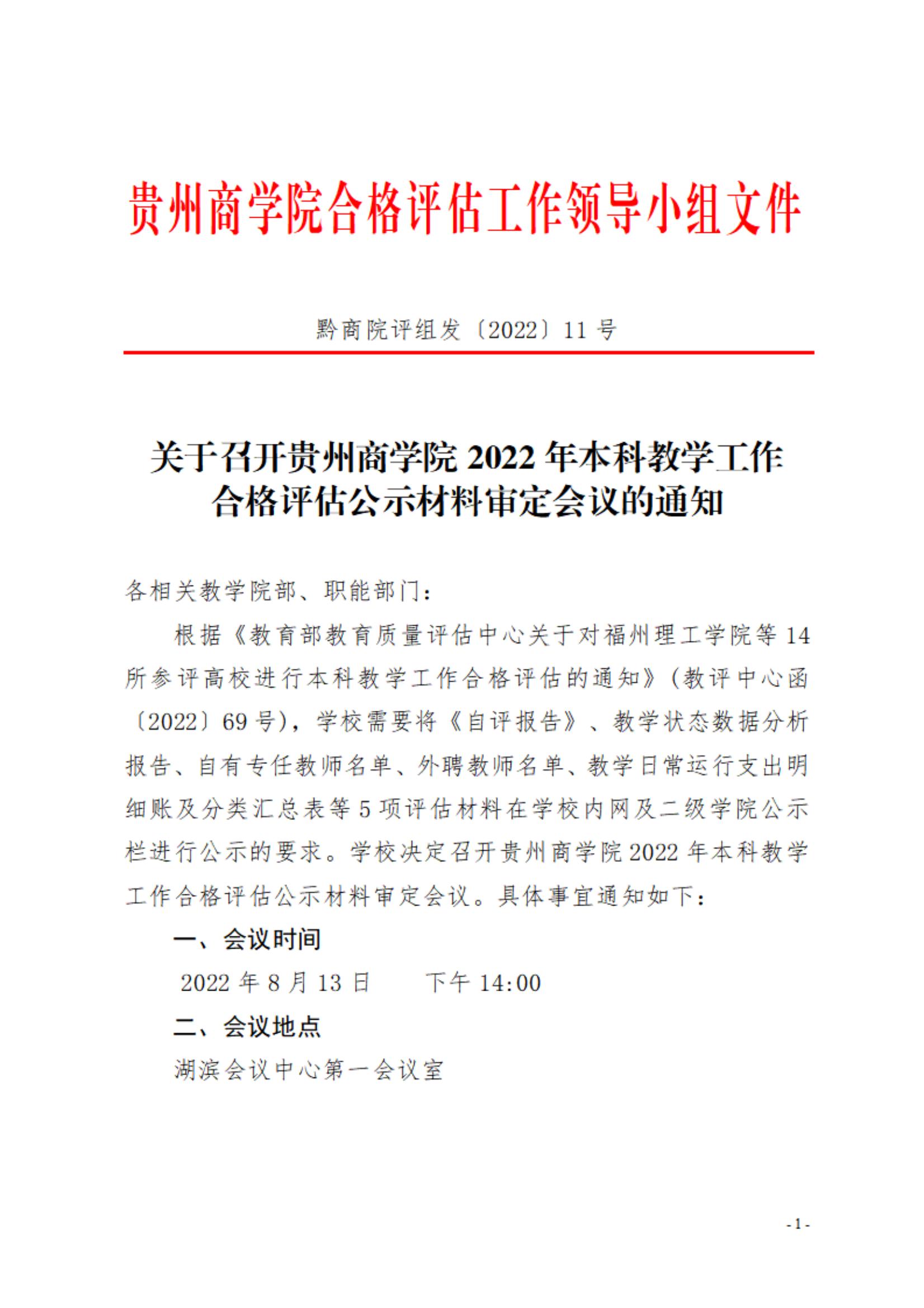 关于召开贵州商学院2022年本科教学工作合格评估公示材料审定会议的通知