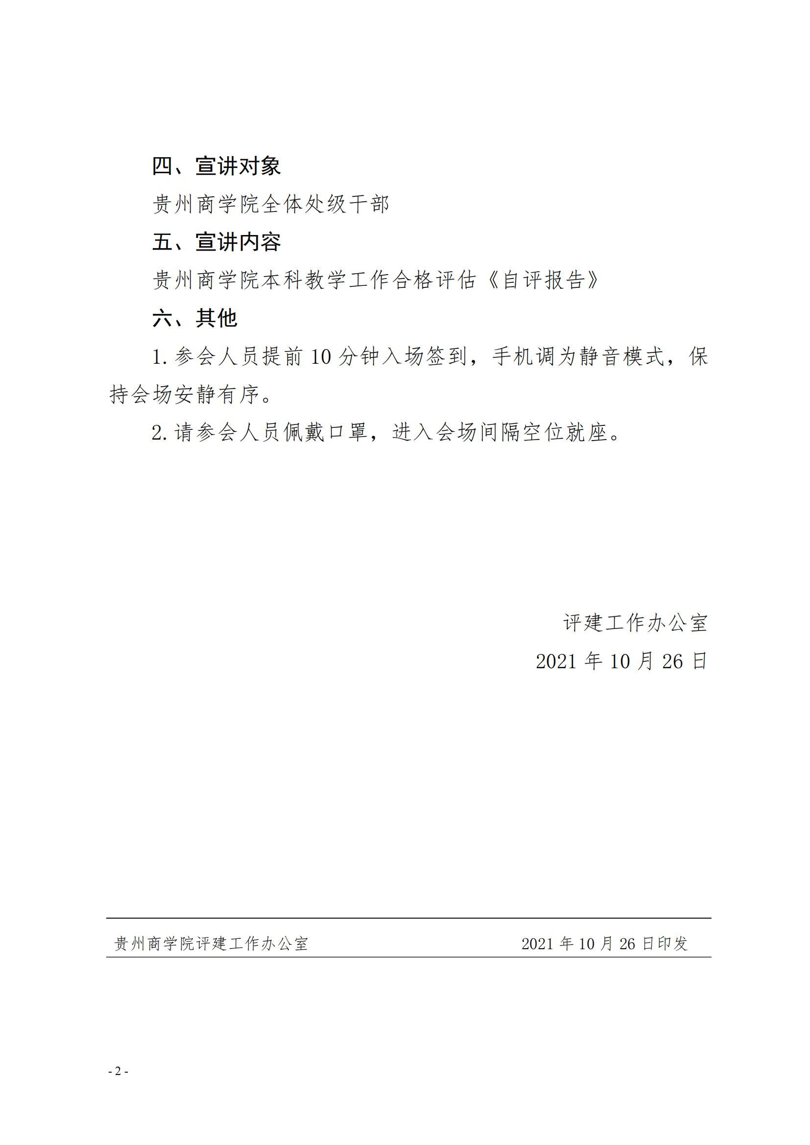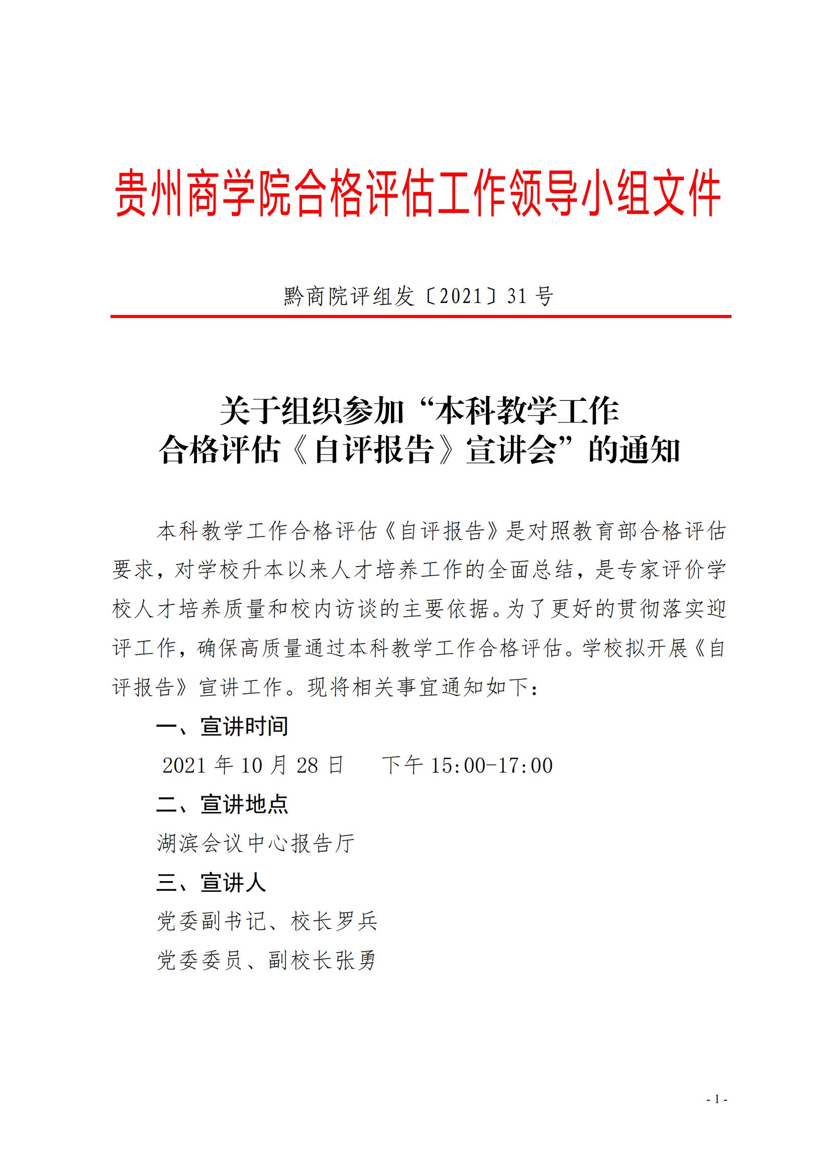 关于组织参加“本科教学工作合格评估《自评报告》宣讲会”的通知