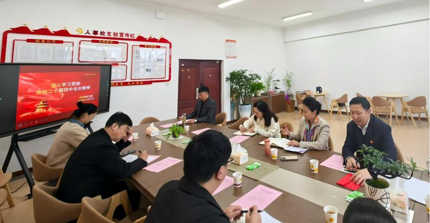 组织部党支部邀请学校马克思主义学院谭向阳教授解读党的二十届四中全会精神,全体党员同志深入学习,坚持学用结合,把学习贯彻全会精神与落实学校第二次党代会精神一体推进,以学习成效赋能学校发展。