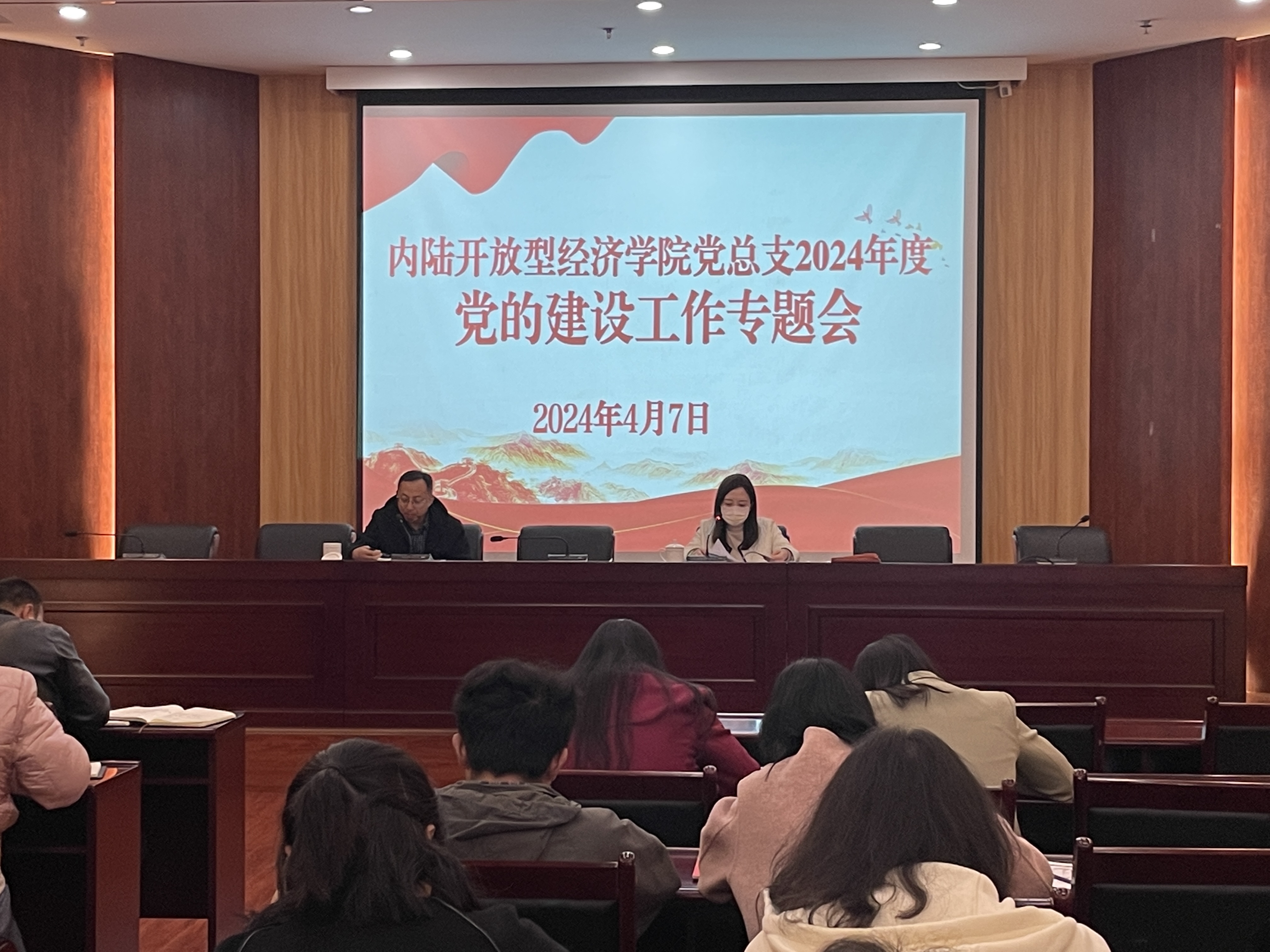为贯彻落实好学校党委相关工作部署和要求,2024年4月7日,内陆开放型经济学院在湖滨会议中心第三会议室召开2024年度党的建设工作专题会。会议由内陆开放型经济学院党总支书记陈小萍主持,学院全体教职员工参加会议。