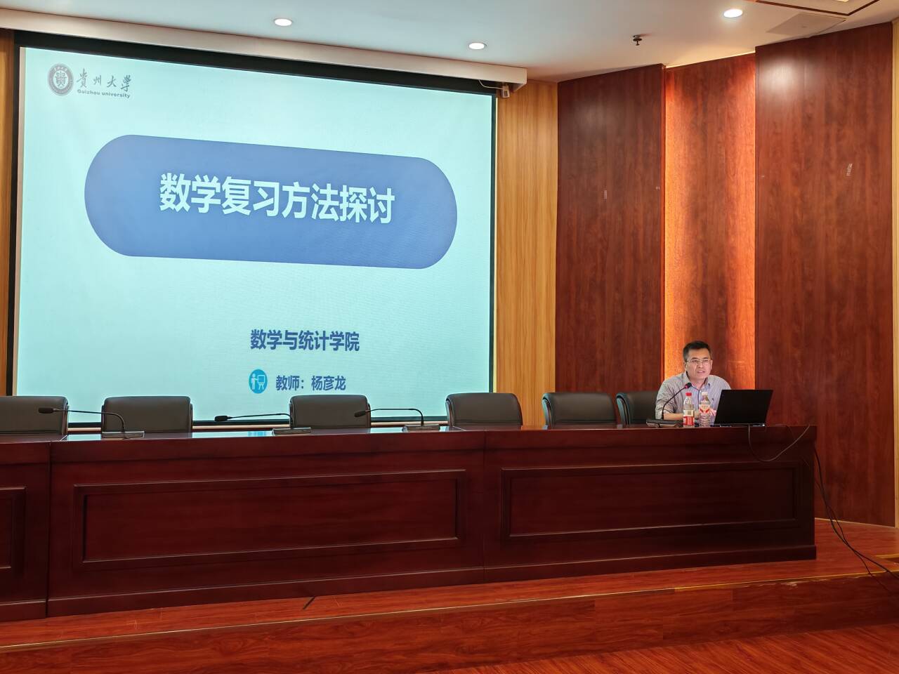 为更好地服务我校考研学生,加强大数据与智能工程学院大学数学尚智培优班建设,精准提升培优班学生考研数学备考能力,大学数学教研室于09月19日晚19:00在静心湖会议中心第三会议室成功举办了尚智培优班考研专题讲座(第一期)。本次活动特邀了贵州大学杨彦龙教授,围绕考研数学备考策略展开深度讲解。