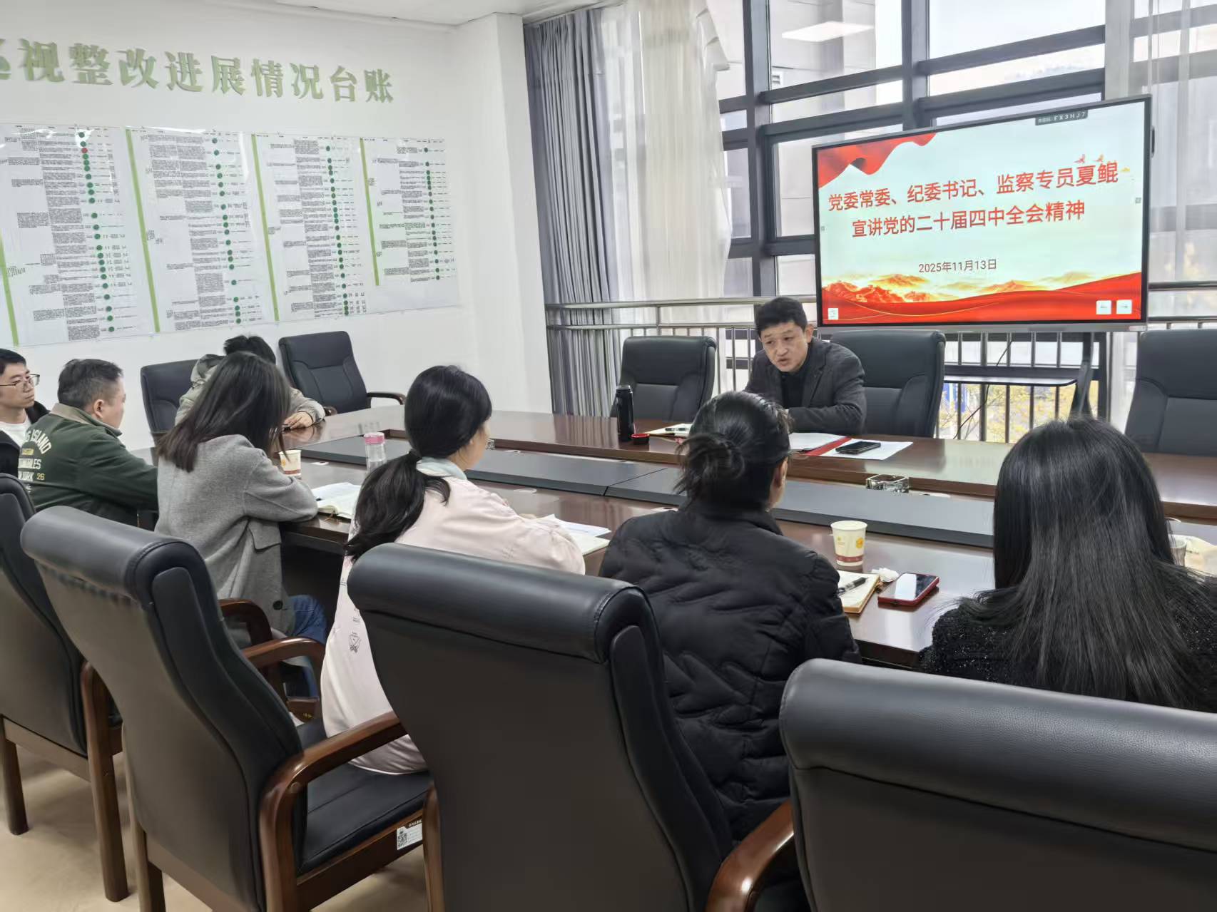 为深入学习贯彻党的二十届四中全会精神,11月13日,校党委常委、纪委书记、监察专员夏鲲在思齐楼318会议室宣讲党的二十届四中全会精神,纪委、监察专员办党支部全体党员参加会议。