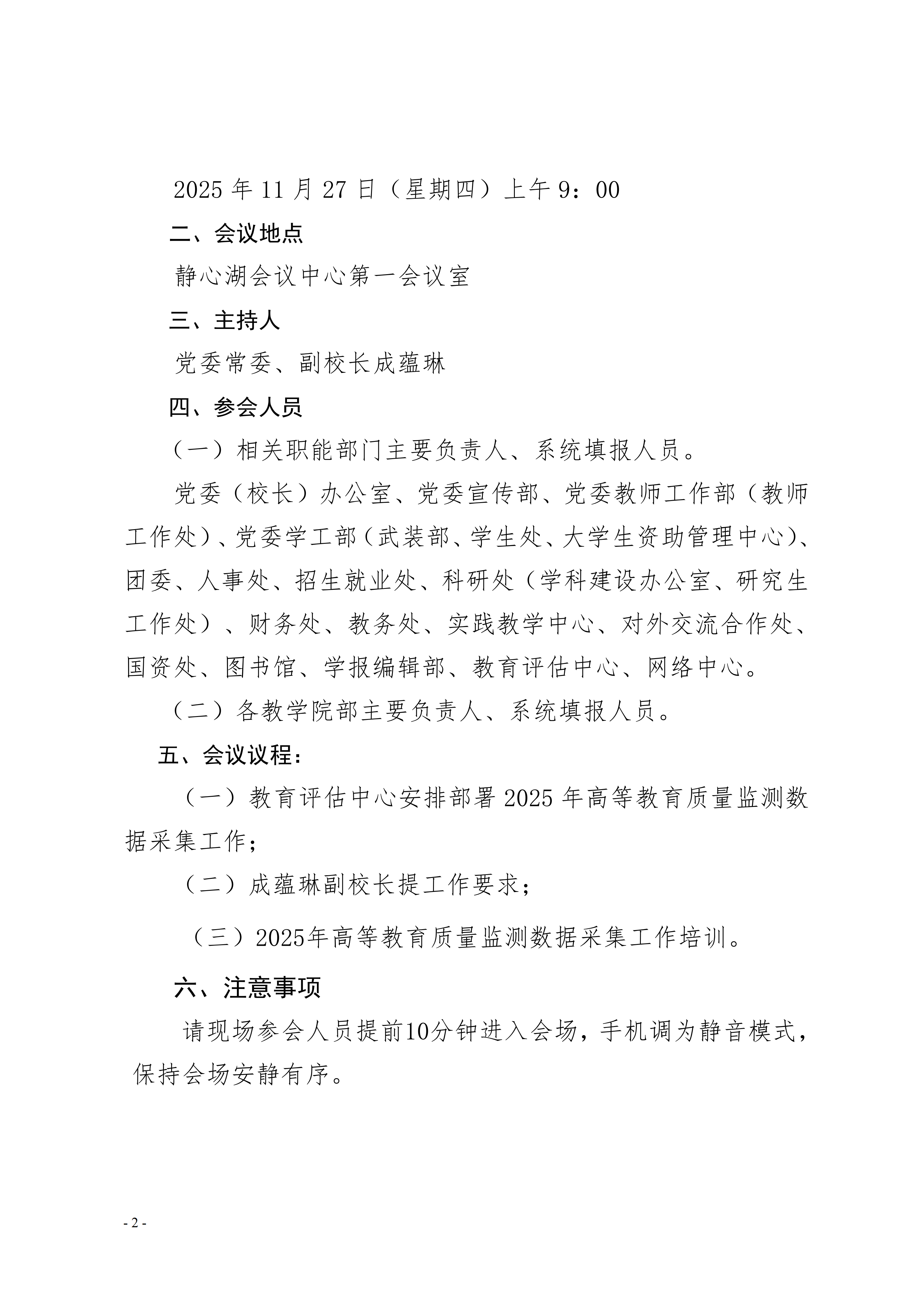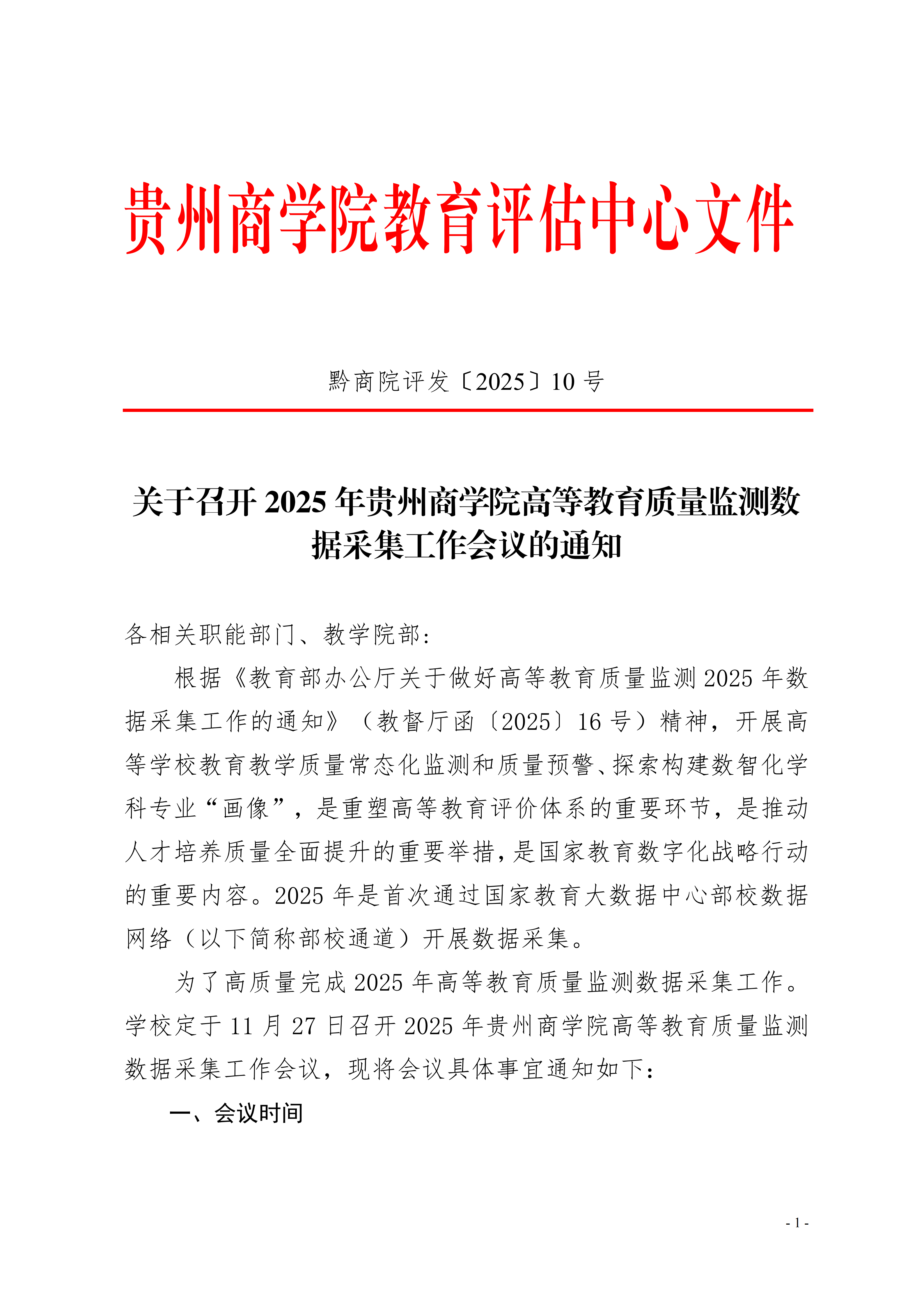 关于召开2025年贵州商学院“高等教育质量监测”数据填报工作会议的通知