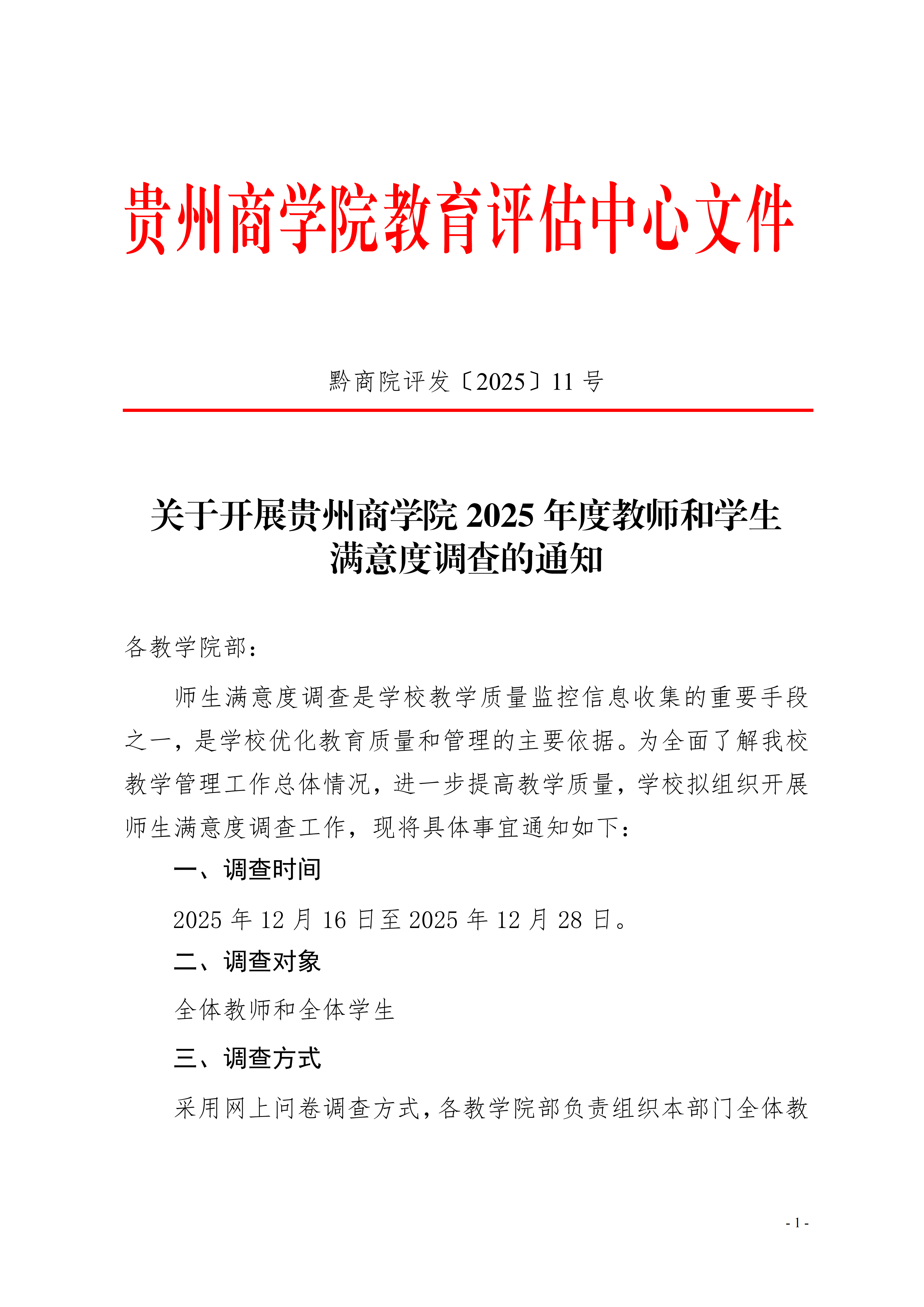 关于开展贵州商学院2025年度教师和学生满意度调查的通知