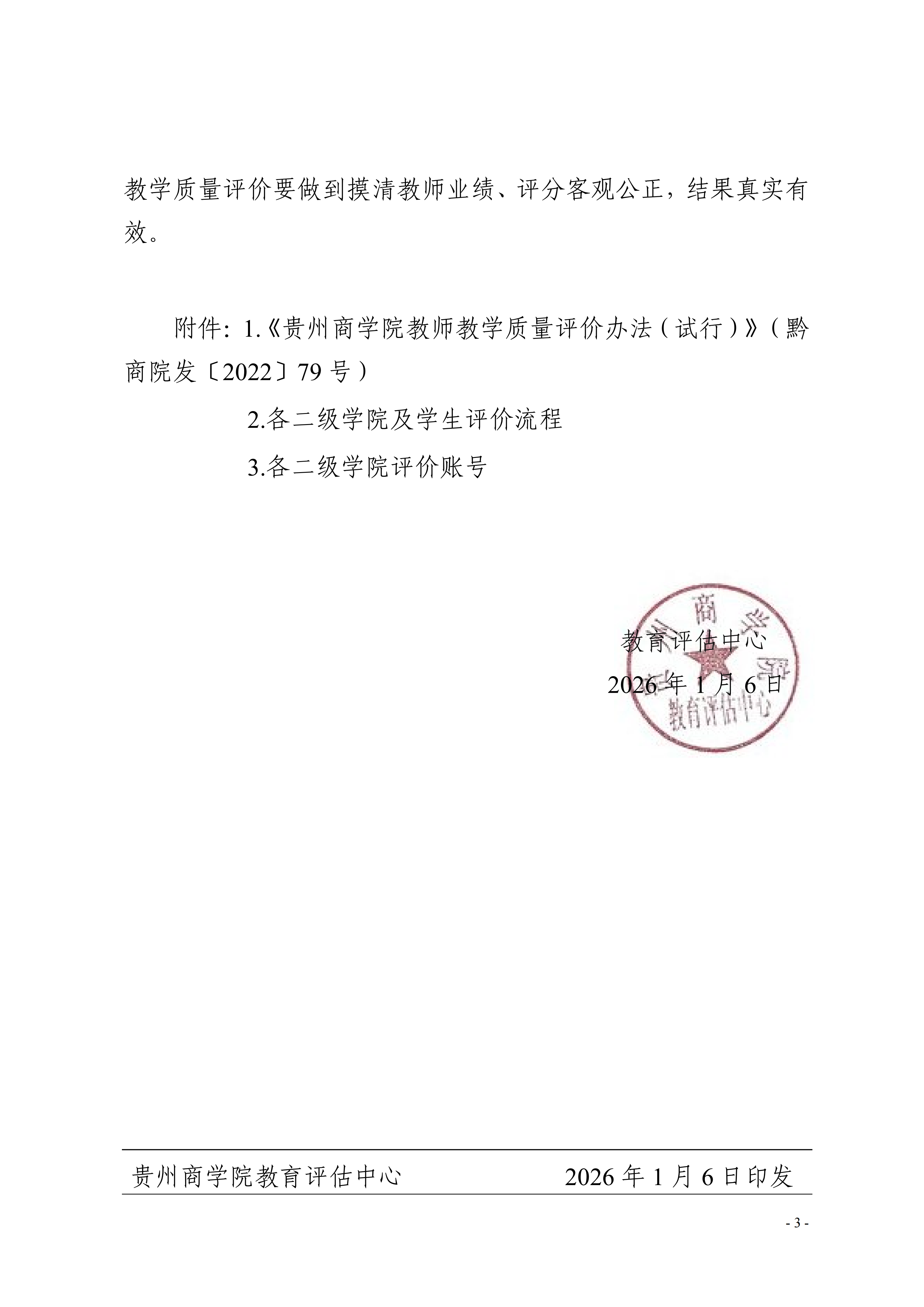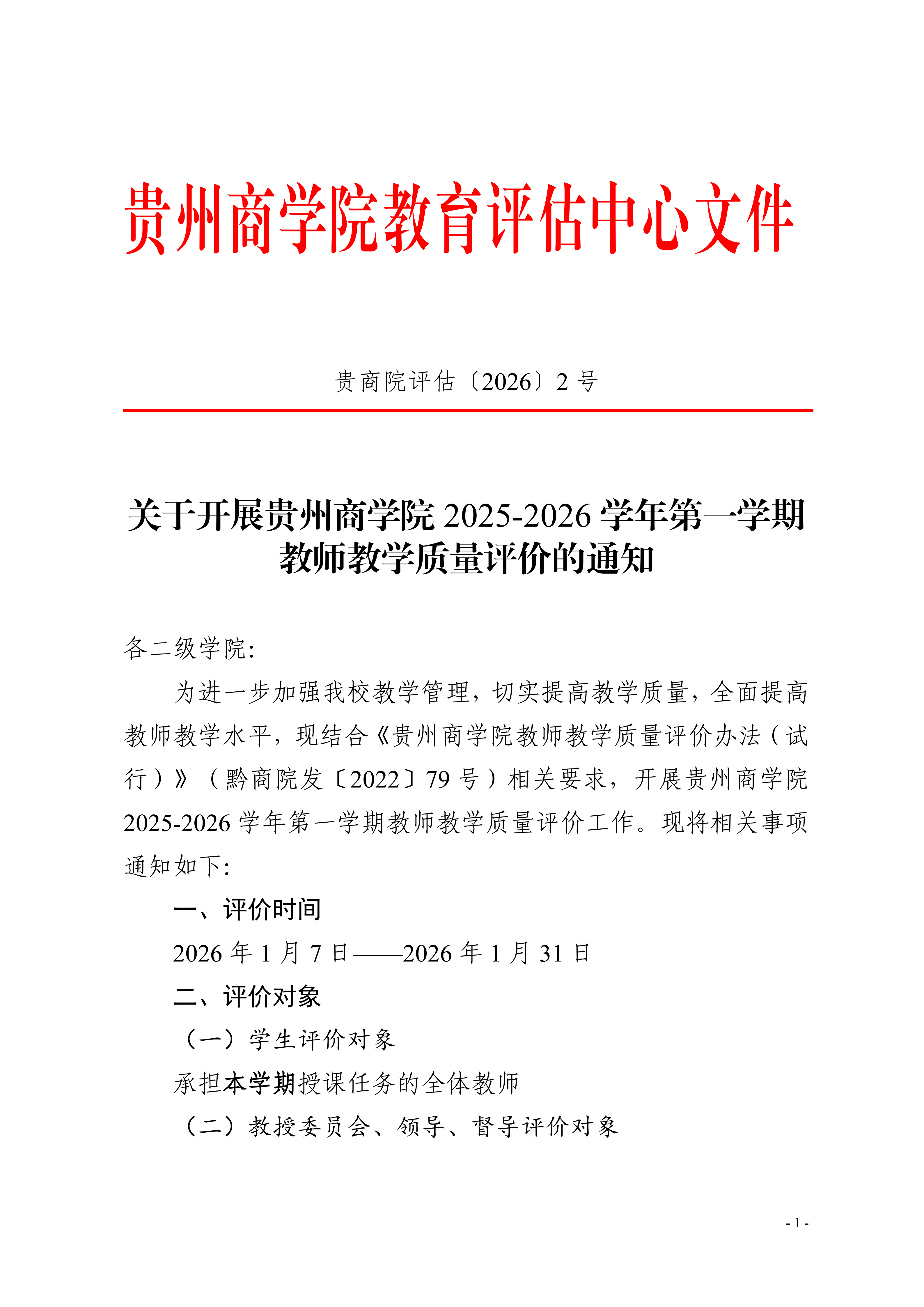 关于开展贵州商学院2025-2026学年第一学期教师教学质量评价的通知