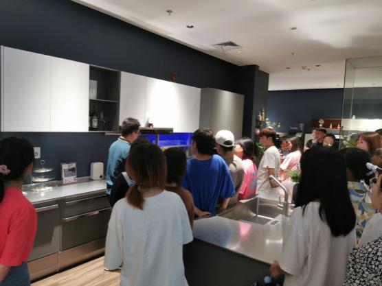 讲座过后,在贵州省装饰设计行业协会工作人员的带领下,同学们分成三组,分别参观了红星美凯龙贵州旗舰店的欧普照明、万格丽不锈钢橱柜等展厅,了解和学习了相关环境设计标准。