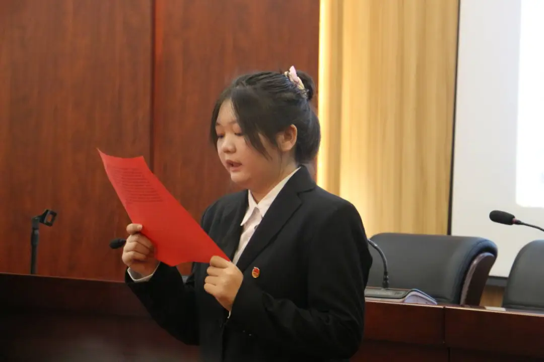 为了更好地巩固今天的团课内容学习,增加团课的趣味性,主持人不仅播放了三个视频,还设置了知识互答环节。相信通过这样的方式,同学们能够将学习到的理论知识与实践相结合,全面学习、宣传和贯彻党的二十大和党的二十届三中全会精神,牢记嘱托,感恩奋进。当全体同学起立重温入团誓词时,我们更加深刻地意识到,作为一名新时期的共青团员,思想政治理论学习是不可或缺的。