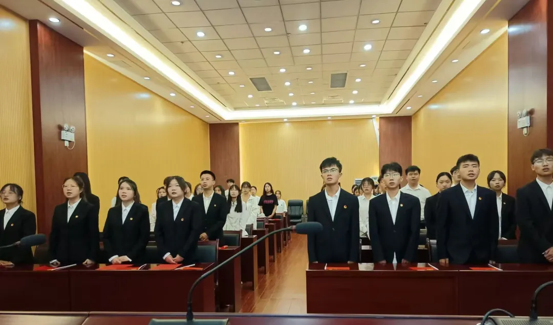 在主持人的引领下,全体同学奏唱国歌,庄严的歌声唤起同学们内心的爱国主义情怀。四位主讲人分别从党的二十届三中全会会议重要讲话精神、总体国家安全观的重要论述、《中共中央关于进一步全面深化改革、推进中国式现代化的决定》、习近平总书记在2024年五四青年节对青年的重要寄语等四个方面带领同学们学习。