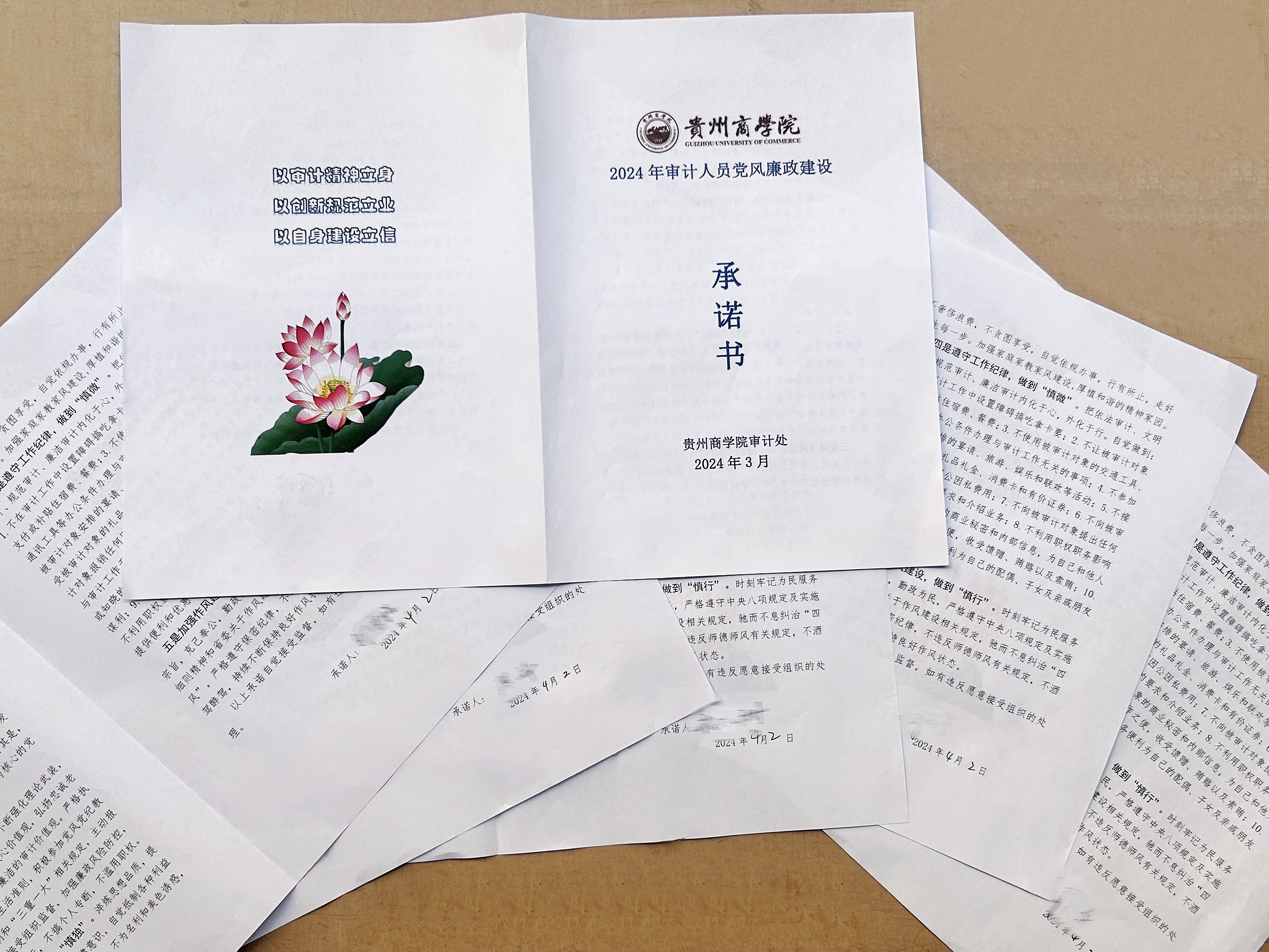 会议组织签订了《2024年审计人员党风廉政建设承诺书》,主要内容包括遵守政治纪律,做到“慎重”;遵守组织纪律,做到“慎权”;遵守廉洁纪律,做到“慎独”;遵守工作纪律,做到“慎微”;加强作风建设,做到“慎行”。要求全体人员必须真心承诺、认真履诺、自觉践诺。