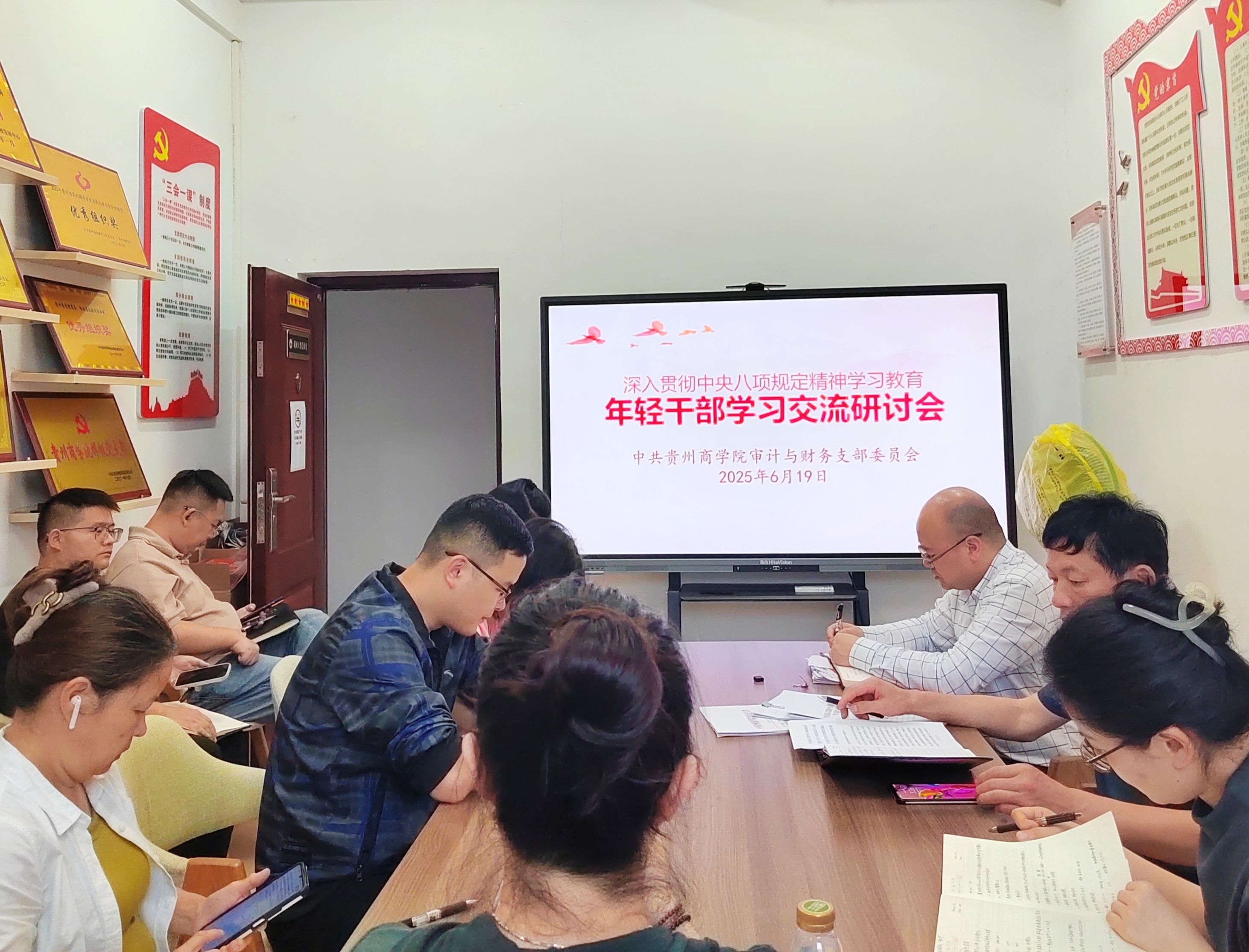 为推进深入贯彻中央八项规定精神学习教育,6月19日,审计与财务支部召开深入贯彻中央八项规定精神学习教育年轻干部学习交流研讨会。会上,集体学习了习近平总书记2022年3月1日在春季学期中央党校(国家行政学院)中青年干部培训班上“努力成长为对党和人民忠诚可靠、堪当时代重任的栋梁之才”的重要讲话(2023年第13期《求是》杂志)。支部书记罗永军主持学习交流研讨会,并结合自身工作经历与年轻干部进行了深入交流。与会35岁以下年轻干部职工廖瑞、陈林、熊菲菲、何欣、龙雨、邹雪怡围绕深入贯彻中央八项规定精神学习教育,结合各自思想和工作实际做了交流发言。