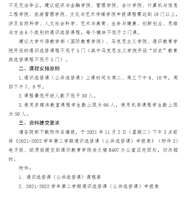 关于2021-2022学年第二学期通识选修课(公共选修课)申报的通知