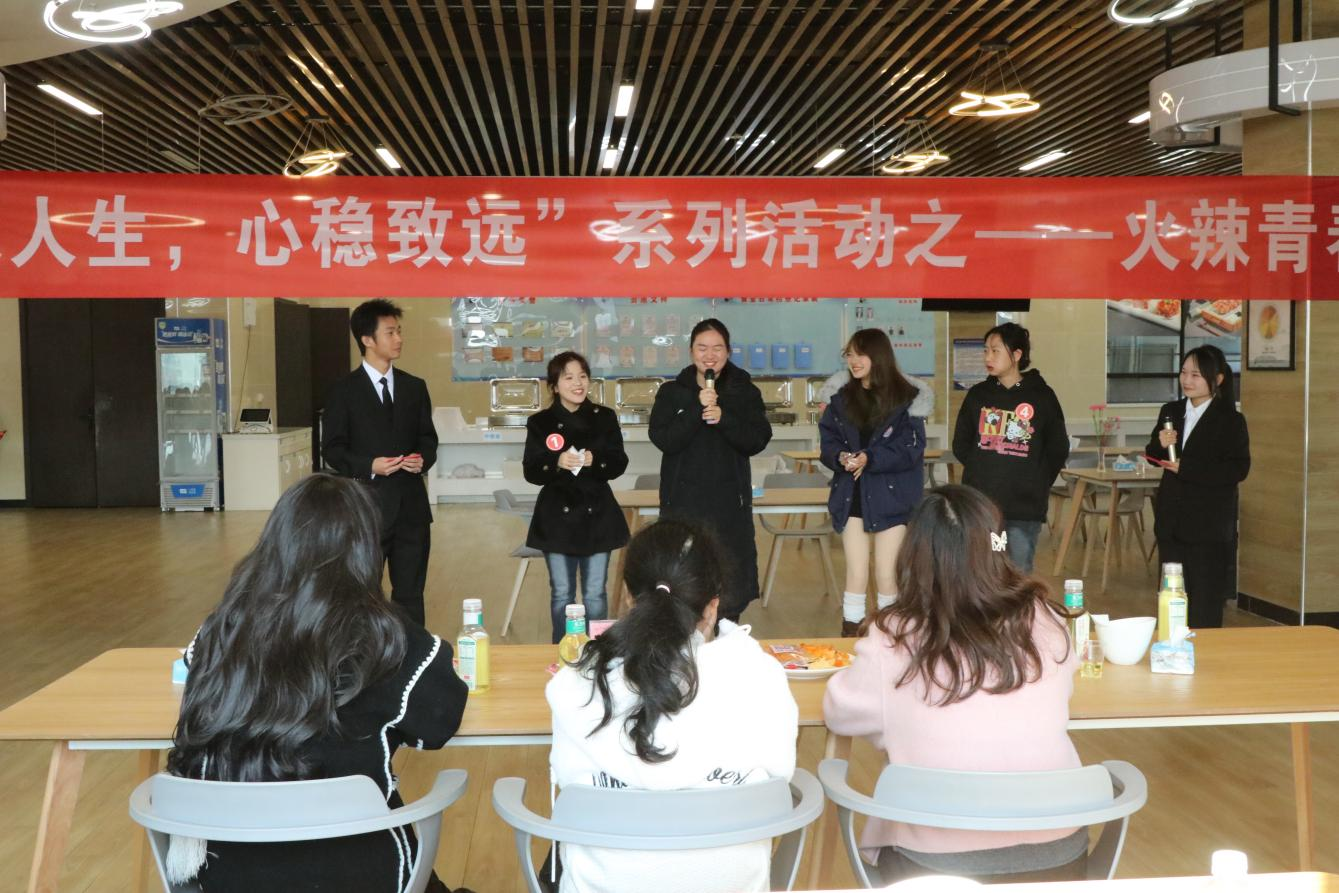 为深化高校心理健康教育的趣味化、生活化表达,帮助师生在沉浸式体验中释放情绪、增强抗压能力、促进同伴联结。2025年11月26日,由通识教育学院党委、学生工作部党支部、团委党支部、后勤与国资党支部、保卫处党支部、数字经济与金融学院党委、会计学院党委联合举办,心理健康协会承办的“拾味人生,心稳致远”系列活动之“火辣青春”活动成功开展。数字经济与金融学院党政办主任付琳、辅导员刘艺珊、通识教育学院综合科科长兼心理健康教育与咨询中心主任周巾裕等嘉宾出席,会计学院会计学2024-2班师生积极参与。