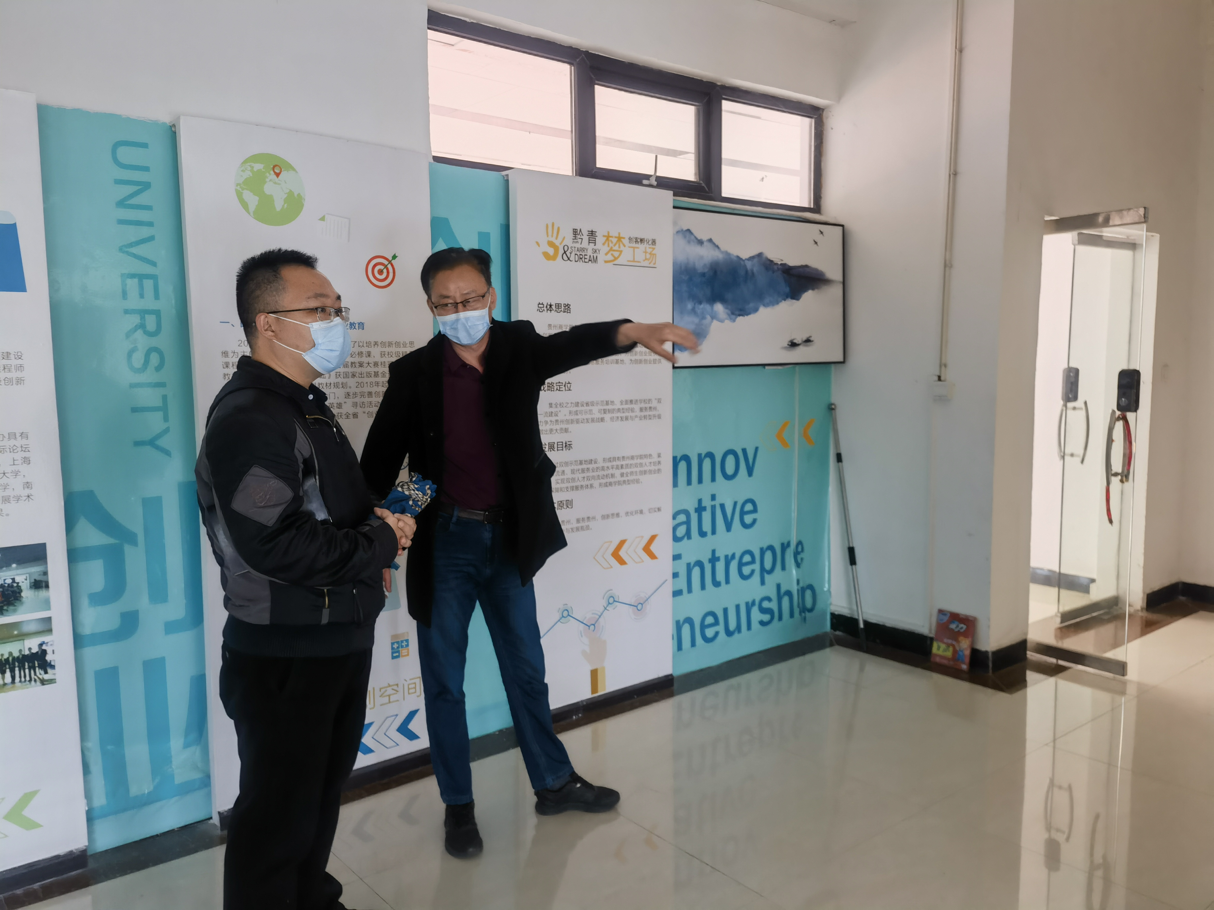 张勇副校长一行实地查看了学校创新创业基地黔青梦工场的建设、运行情况,并对近两年大学生创新创业训练计划项目开展的情况进行了调研。张勇副校长指出,通识教育学院要统筹组织好大学生创新创业训练计划项目的开展,利用好黔青梦工场这一平台,加强平台软、硬件建设,做好创新创业项目的培育、孵化和管理工作。