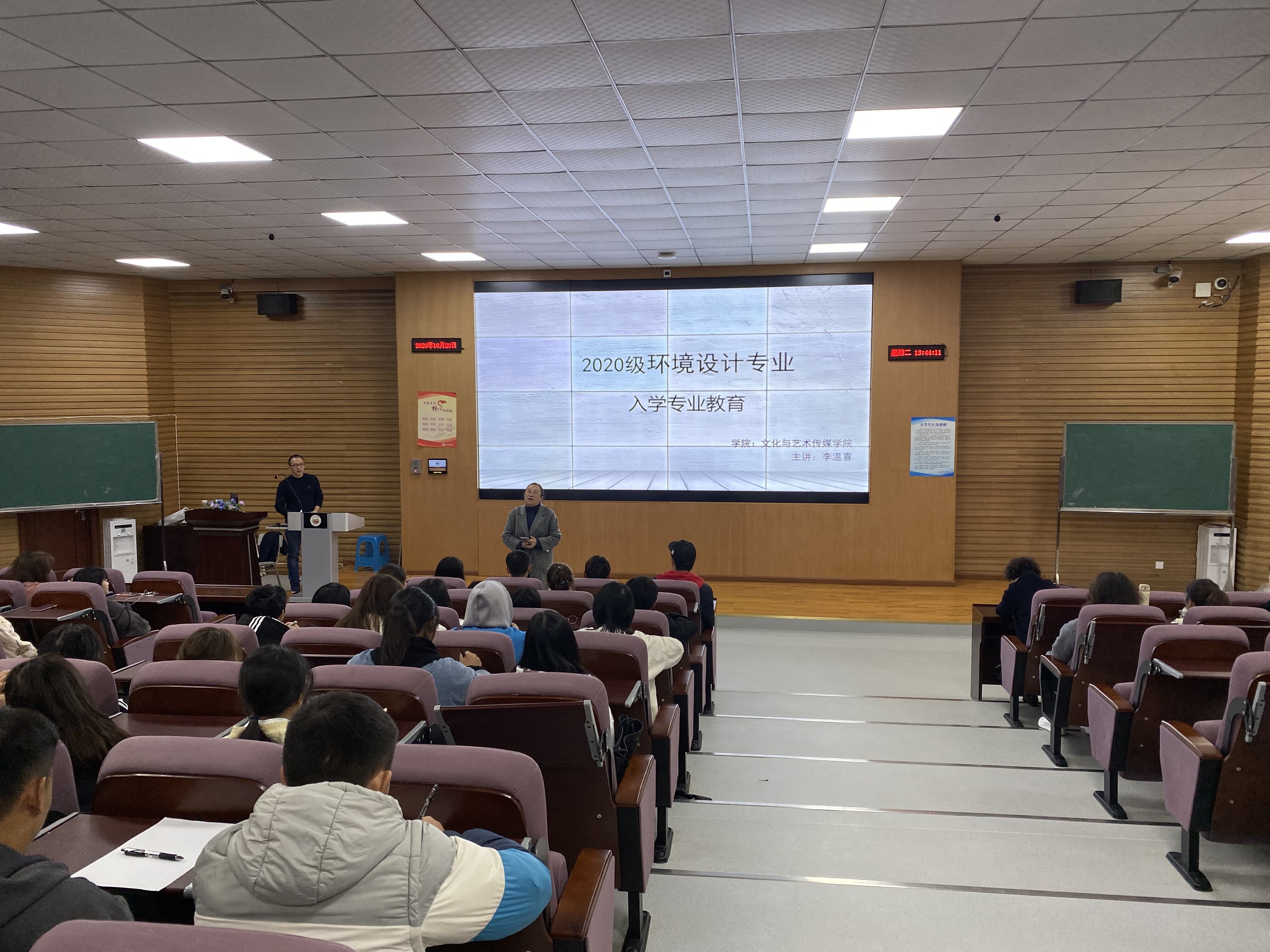 金秋九月,文化与艺术传媒学院环境设计专业迎来了2020级新同学,为了能使同学们更快了解贵州商学院,更充分的了解环境设计专业,适应大学生活,环境设计专业教研室于2020年10月20日13:40——15:40组织环境设计专业2020级新生在3J103阶梯教室展开入学教育工作。会议由李温喜老师主持,参会人员有李燕副书记、张思思副院长,环境设计专业教研室的车浩强、胡星、胡洋、黄思嘉、刘尚志、路大壮等老师,新生辅导员龙孝华老师,以及2020级环境设计专业所有新生。会议受到了学院相关领导的高度重视,学院党总支副书记李燕老师、学院副院长张思思老师代表学院领导班子出席会议并发表重要讲话。