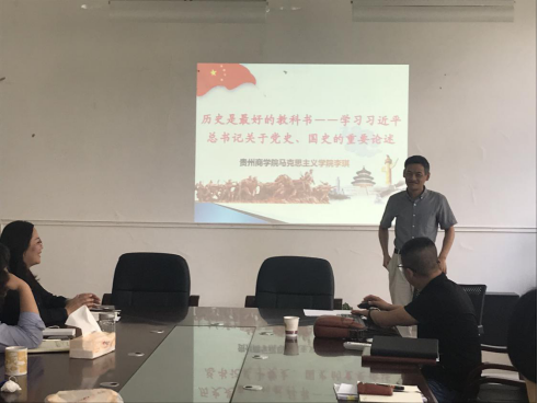 2019年9月17日下午,贵州商学院文化与艺术传媒学院党总支召开“不忘初心 牢记使命”主题教育动员大会,邀请马列主义学院的李琪副教授为全体党员教师上了一节党课,题目是《历史是最好的教科书——学习习近平总书记关于党史、国史的重要论述》。