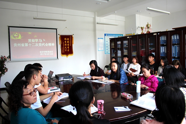 中国共产党贵州省第十二次代表大会于4月16日至20日在贵阳召开,这是我省一次承前启后、继往开来的大会,是一次鼓舞人心、催人奋进的大会,是一次发扬民主、凝聚共识的大会,是一次纪律严明、风清气正的大会。学院党总支要求各位党员老师于4月16日至20日期间收看第十二次代表大会。按照学校党委通知要求为深入学习宣传贯彻省第十二次党代会精神,切实把学院党组织、广大党员干部、师生员工的思想统一到大会精神上来,引导广大党员干部、师生员工为实现开创多彩贵州新未来的奋斗目标贡献力量,实现学校跨越式发展。学院党总支于5月16日下午积极组织学院全体党员老师通过党员大会、党员QQ群、党员微信平台等方式认真学习省委书记陈敏尔同志代表中共贵州省委第十一届委员会所作的《紧密团结在以习近平同志为核心的党中央周围 决胜脱贫攻坚 同步全面小康 奋力开创百姓富生态美的多彩贵州新未来》的报告、陈敏尔书记《在省第十二次党代会闭幕式上的讲话》、《在中共贵州省委十二届一次全会上的讲话》以及《中共贵州省第十一届纪律检查委员会向中国共产党贵州省第十二次代表大会的工作报告》等精神,通过学习大家认识到我们要深刻领会和精准把握省第十二次党代会的重要意义和精神实质,结合学校、学院发展的实际,弘扬“不怕困难、艰苦奋斗、攻坚克难、永不退缩”的贵商人的精神,用“爱国、敬业、诚信、友爱”的价值取向,领会好、学习好、贯彻好、落实好中央、省委、学校党委的决策部署,全面推进学校、学院“双一流”特色建设,学院党员老师表示将以实际行动立足自己的工作岗位,踏踏实实教书,实实在在育人,落实上见成效,用实际行动迎接党的十九大的召开。学院全体党员老师通过学习后撰写了学习心得体会。