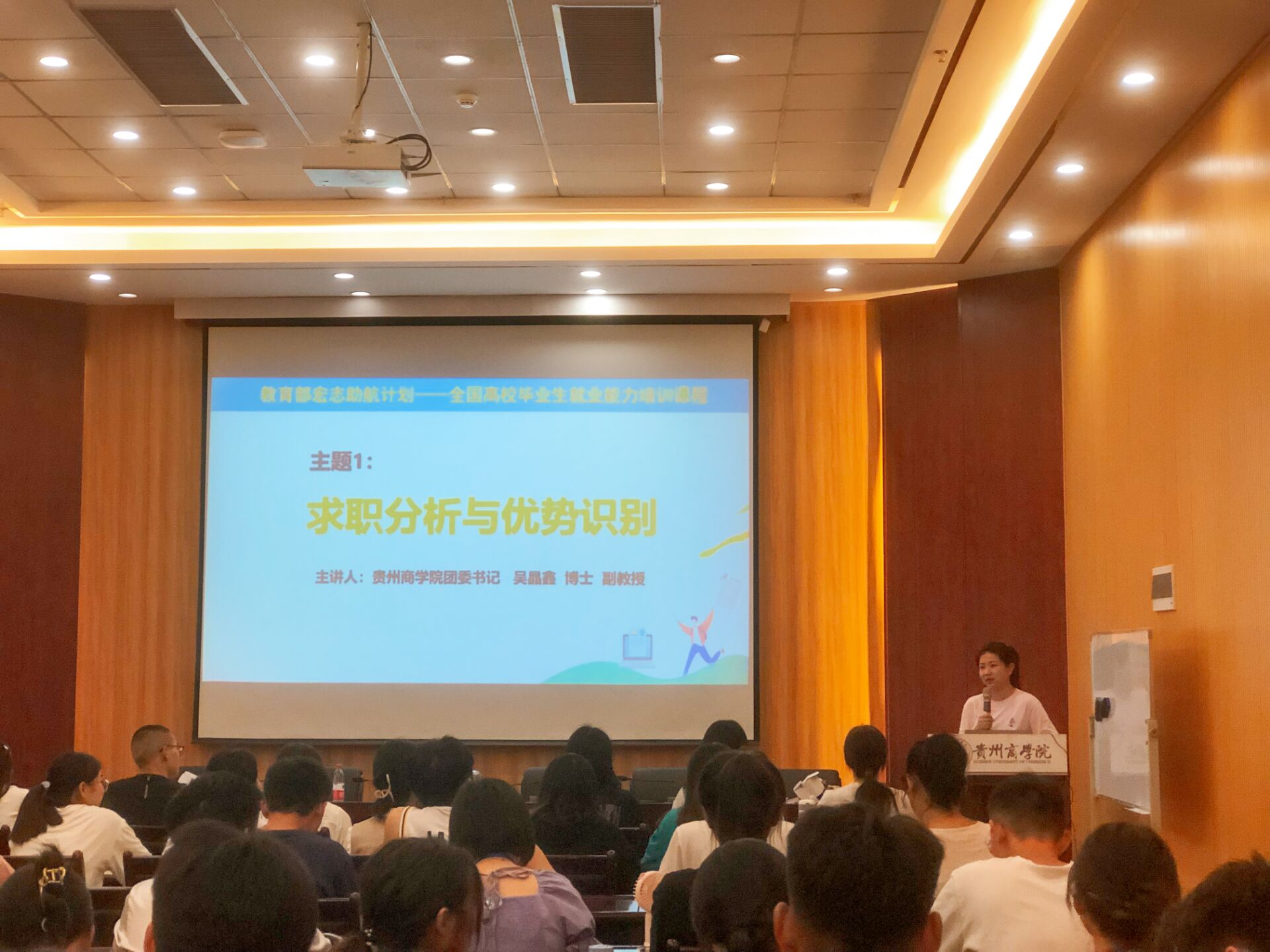 为贯彻落实党中央、国务院“稳就业”“保就业”决策部署,根据教育部、财政部《中央彩票公益金宏志助航计划——全国高校毕业生就业帮扶项目》、《教育部高校学生司关于开展2022年宏志助航计划——全国低收入家庭高校毕业生就业帮扶项目的通知》(教学司函〔2022〕6号)、《贵州省2022年宏志助航计划——全国低收入家庭高校毕业生就业帮扶项目实施细则》等文件精神,贵州商学院2022年“宏志助航计划”全国高校毕业生就业能力培训班在学生处(招就处)的精心组织及安排下,于2022年7月14日下午在在湖滨第三会议室举行了开班仪式。
