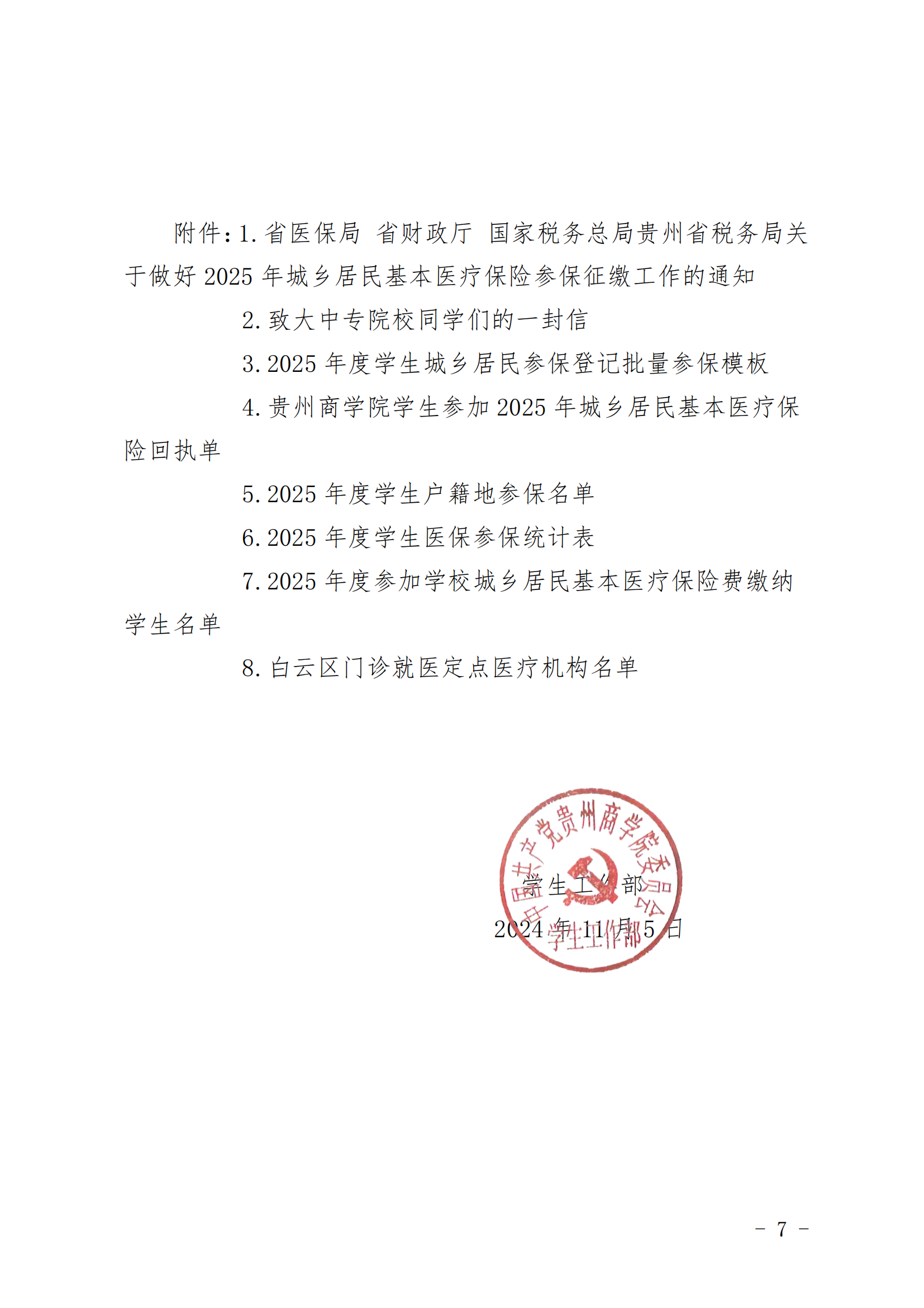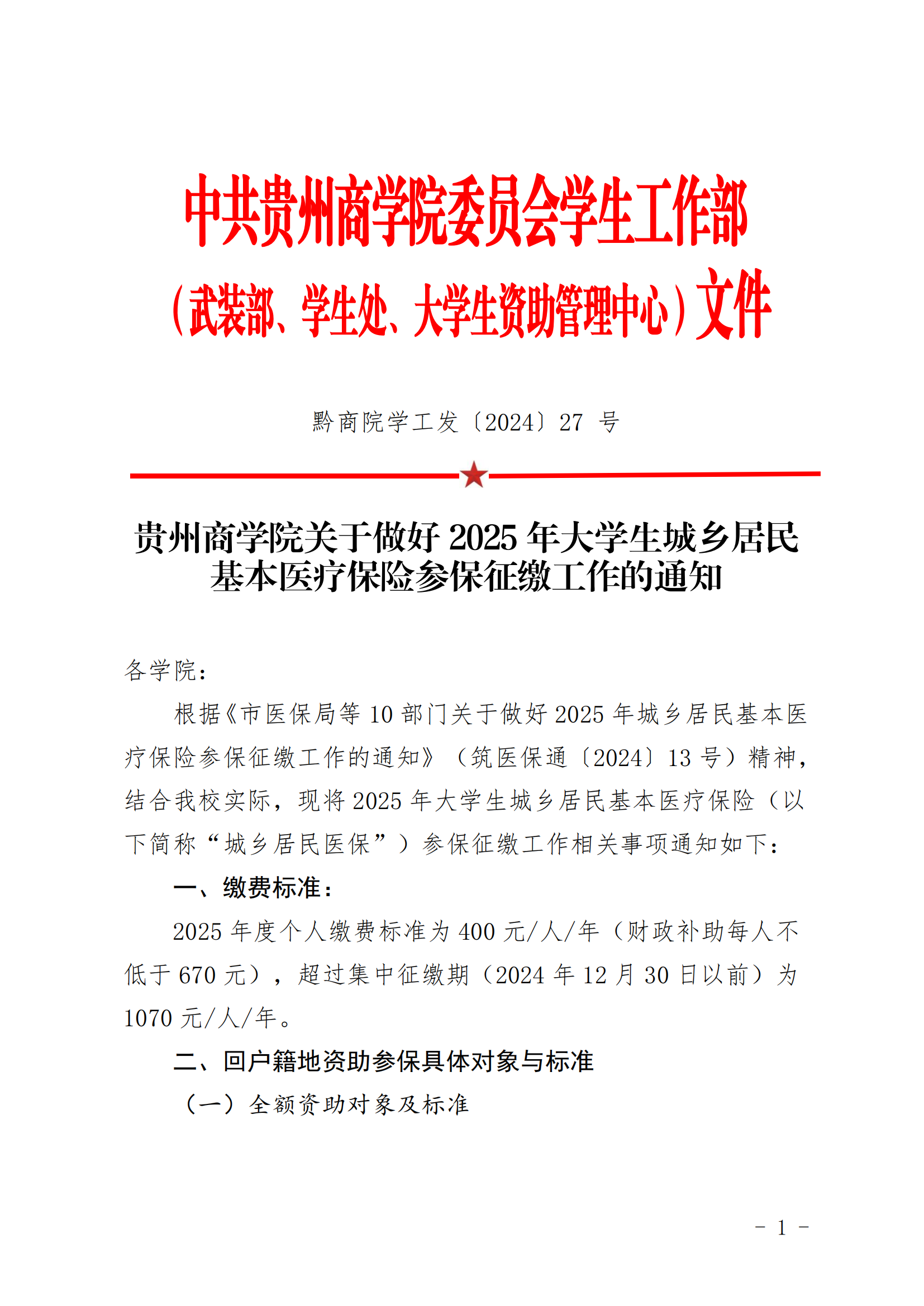贵州商学院关于做好2025年大学生城乡居民基本医疗保险参保征缴工作的通知