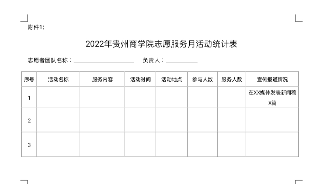 附件1:《2022年贵州商学院志愿服务月活动统计表》