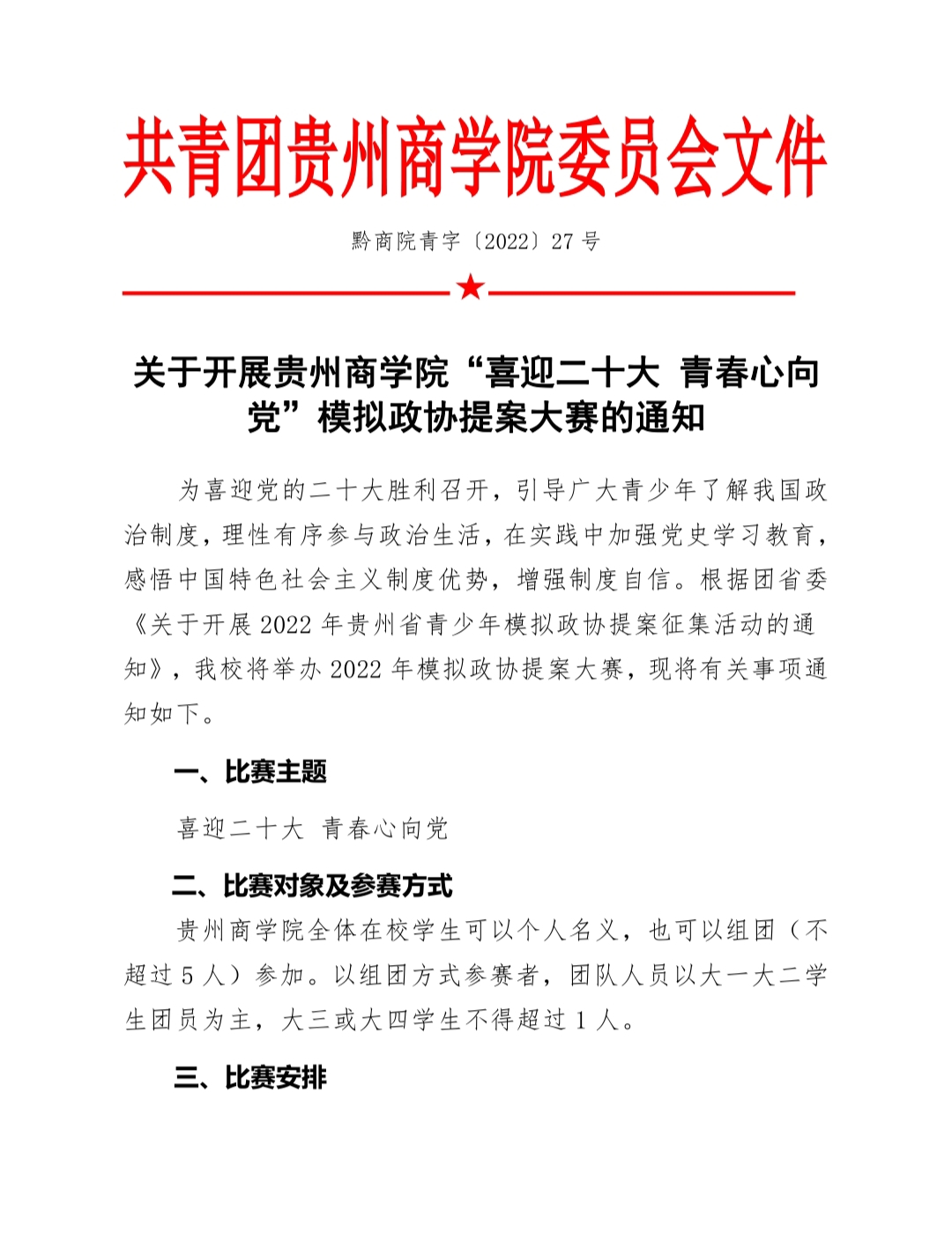 关于开展贵州商学院“喜迎二十大 青春心向党”模拟政协提案大赛的通知