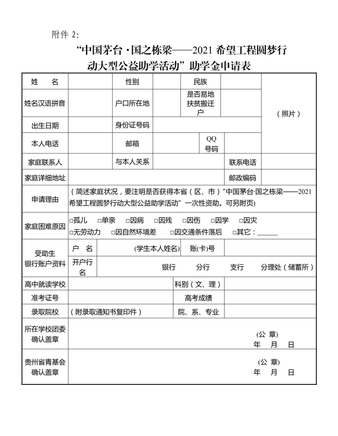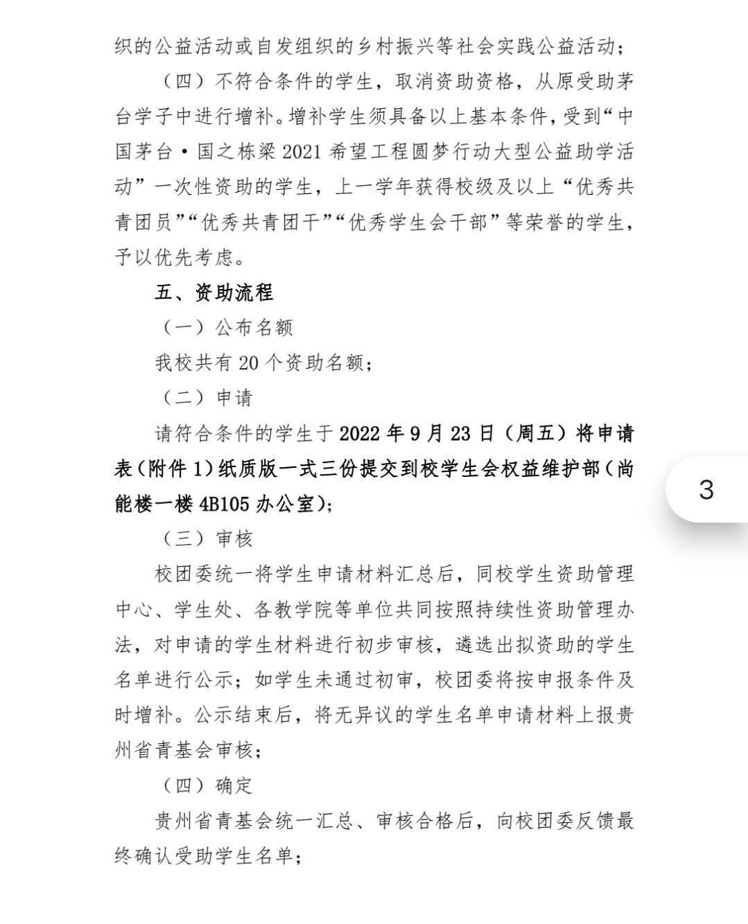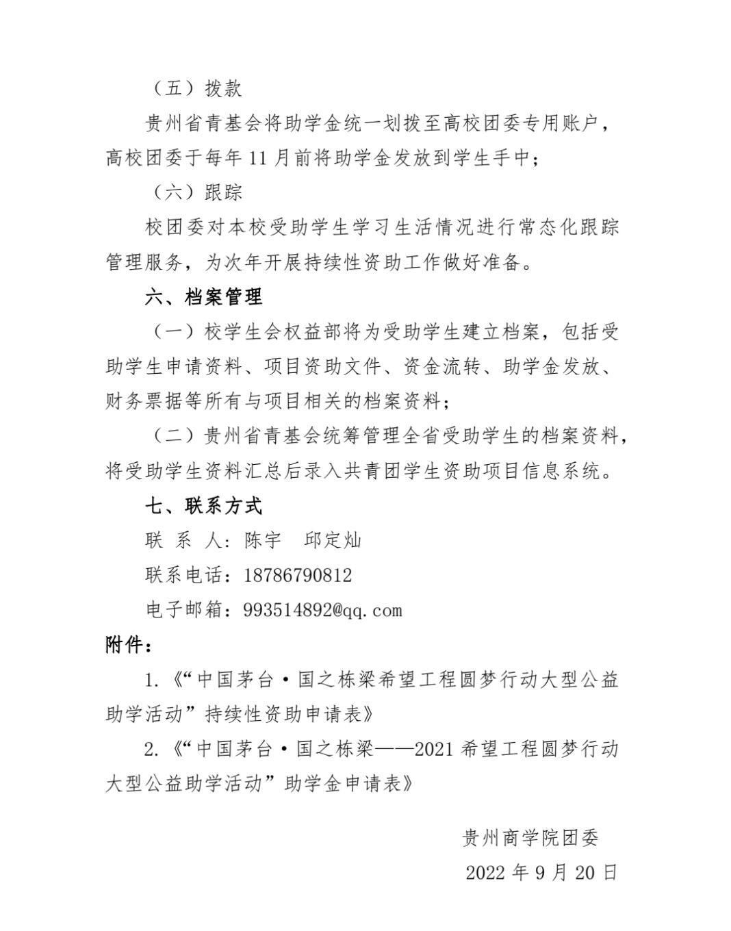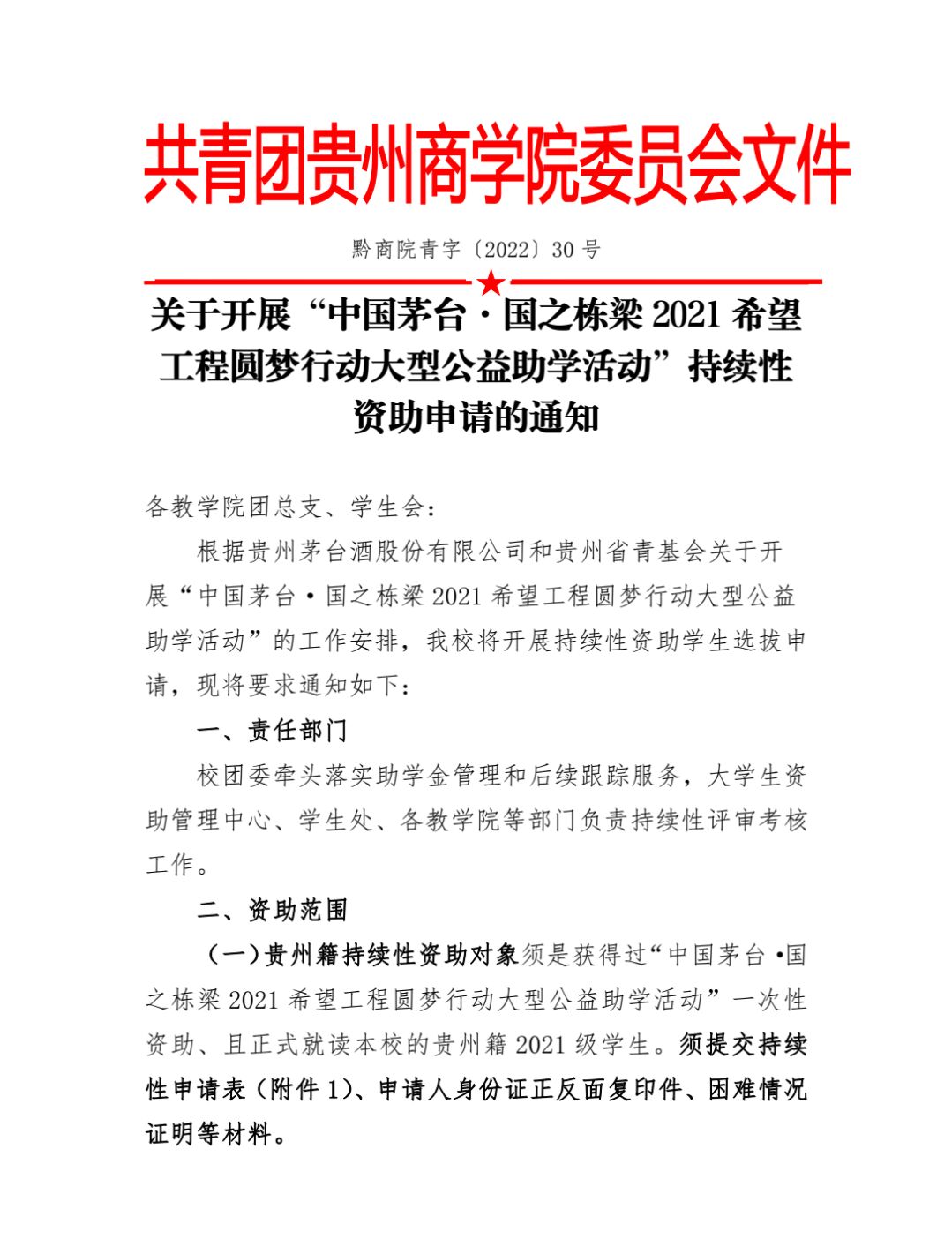 黔商院青字〔2022〕30号关于开展“中国茅台·国之栋梁2021希望工程圆梦行动大型公益助学活动”持续性资助申请的通知